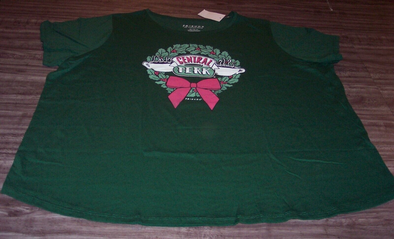 This is a WOMEN'S FRIENDS Central Perk Christmas Wreath T-shirt. It is a Plus Size 4XL and is NEW with the tag. It is 30 1/2 inches from armpit to armpit and 30 inches in length. Combine auctions to save on shipping. D3AG