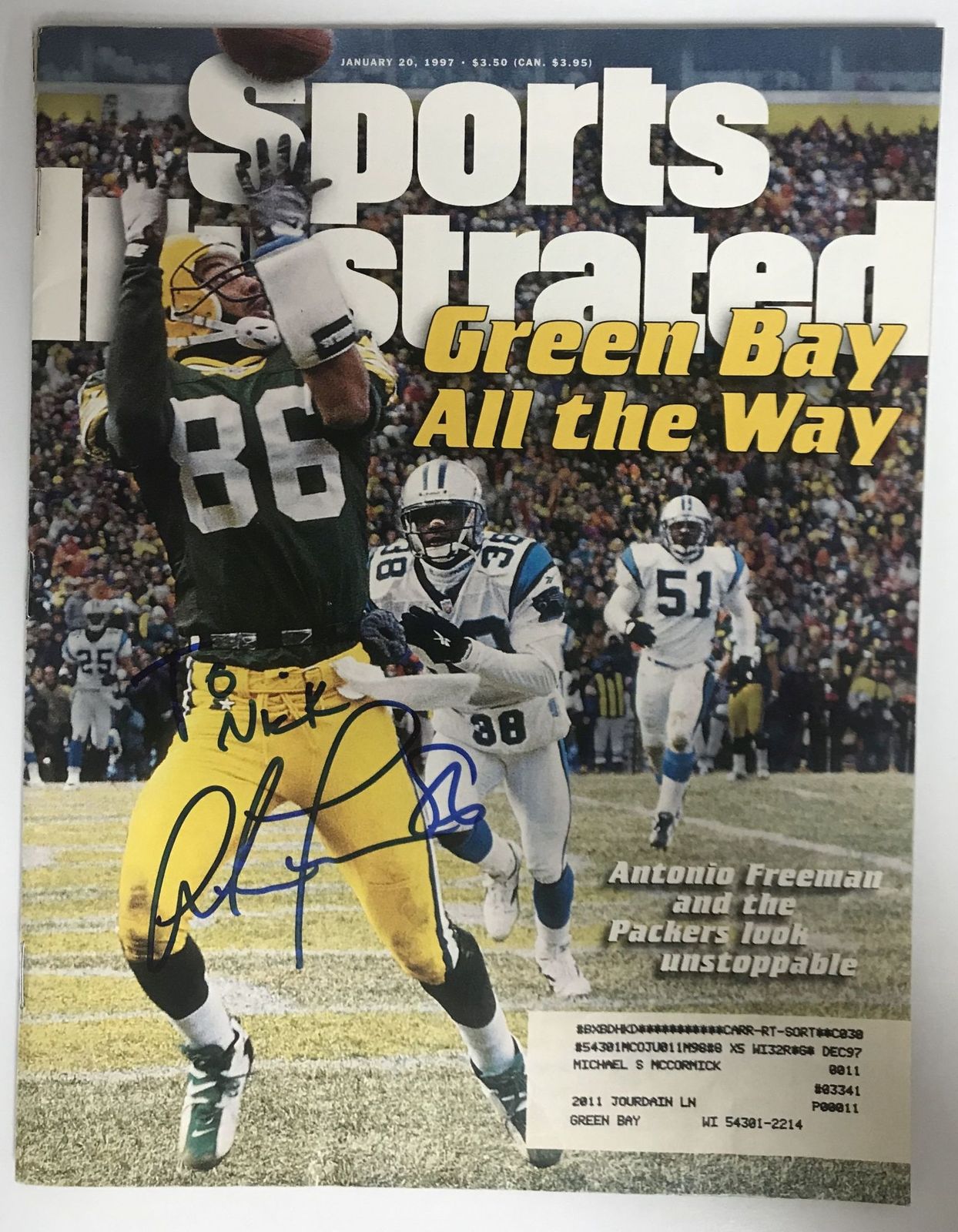 Antonio Freeman Signed Autographed Complete "Sports Illustrated" Magazine - GB P