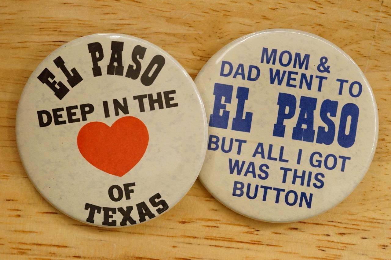 Vintage Advertising Travel Pinback Buttons 2.25" El Paso Texas Souvenir. No smoke or pet odor.