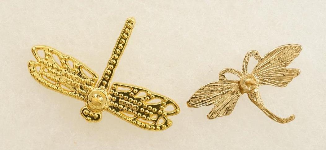 Costume Jewelry Lot 2 Gold Tone Colorful Enamel Dragonfly Lapel Brooch Pins - they measure 1-1.25" tall. No smoke or pet odor.