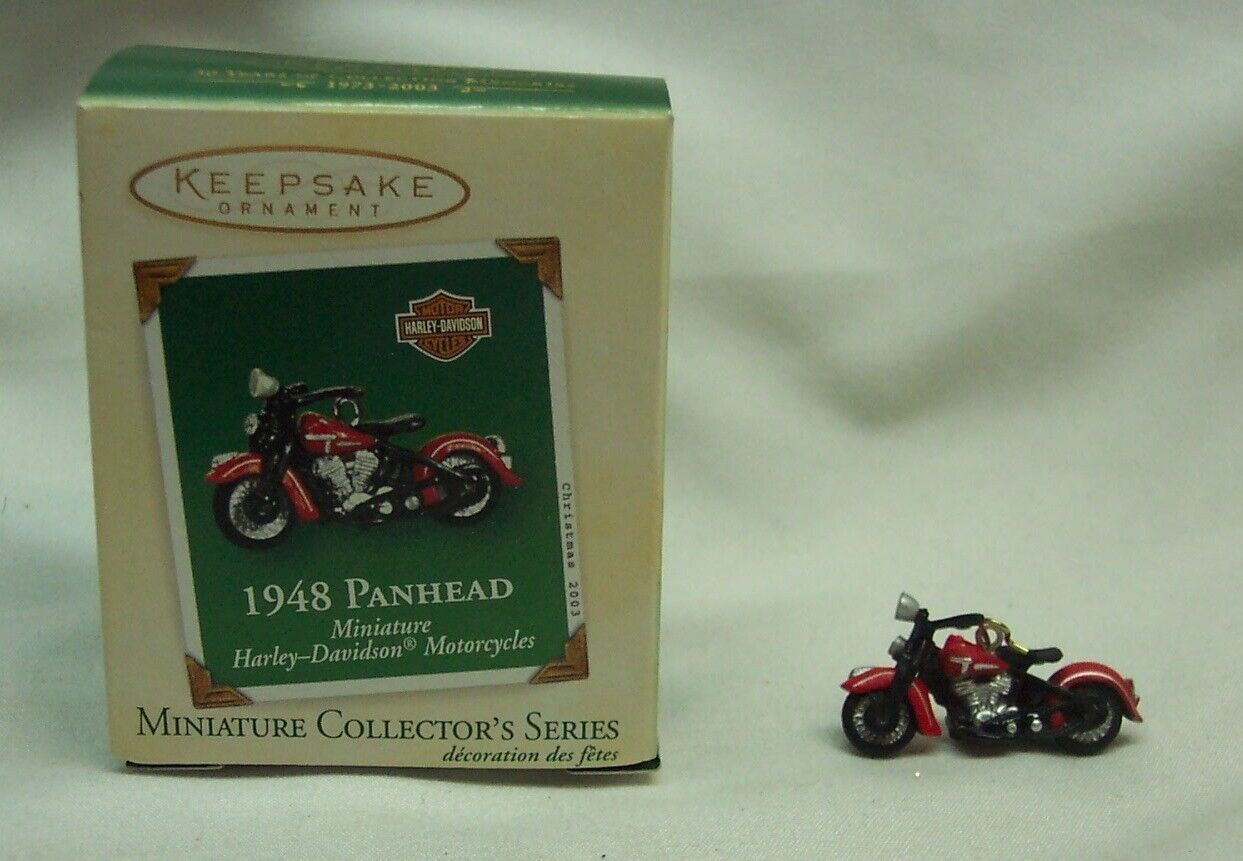 This is a Vintage Hallmark Keepsake 1948 PANHEAD Harley-Davidson Motorcycle Miniature CHRISTMAS HOLIDAY ORNAMENT. Made by Hallmark in 2003. It is in great condition in original box. It is 1 1/4 inches long. Combine auctions to save on shipping. Please contact me if you need to make other payment arrangements. EAG