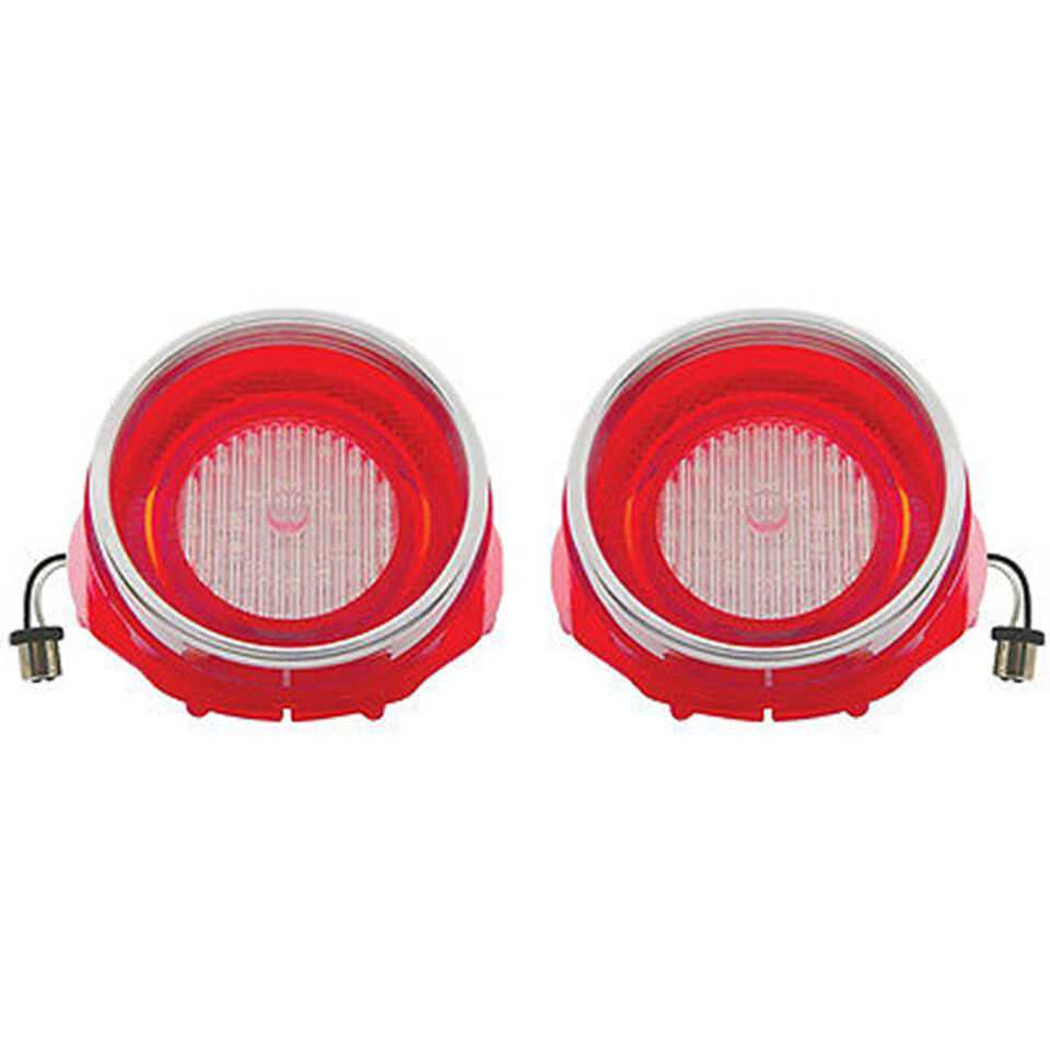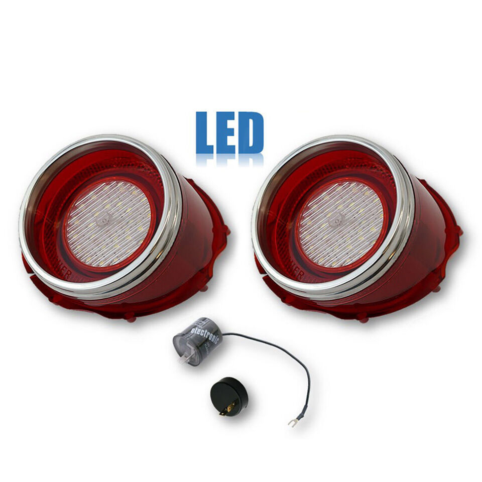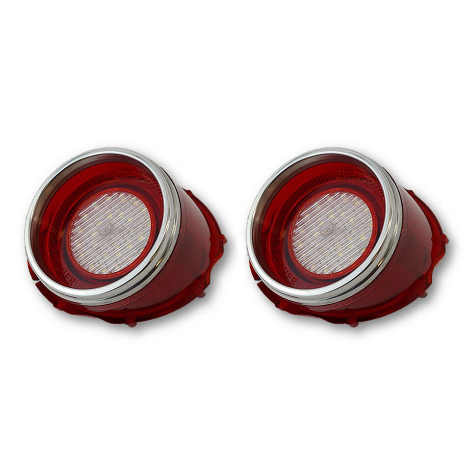65 Chevy Impala LED Red Tail Back Up Light Lens w/ Stainless Trim Flasher Pair