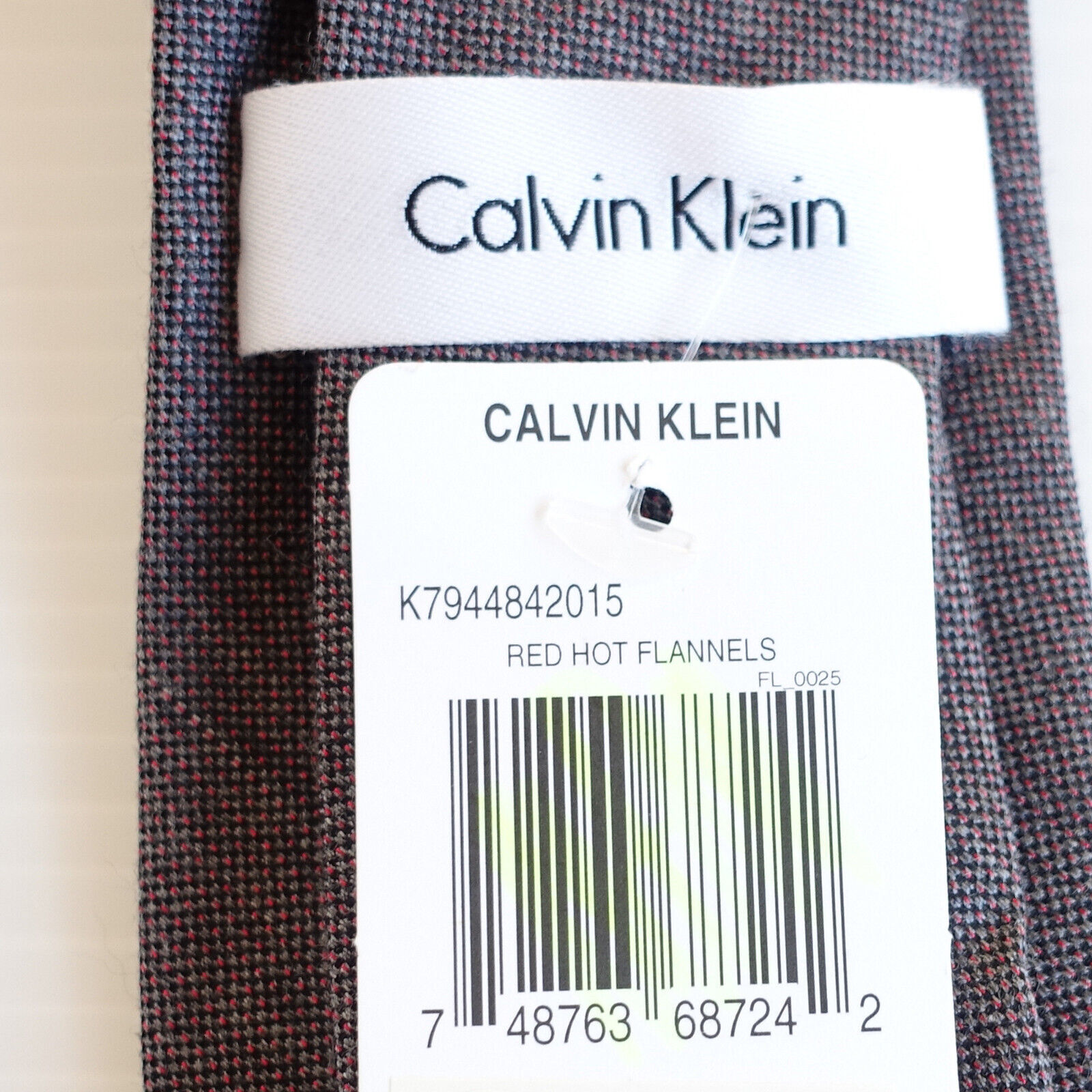 CALVIN KLEIN Gray Red Hot Flannels Melange Silk Blend Slim Tie