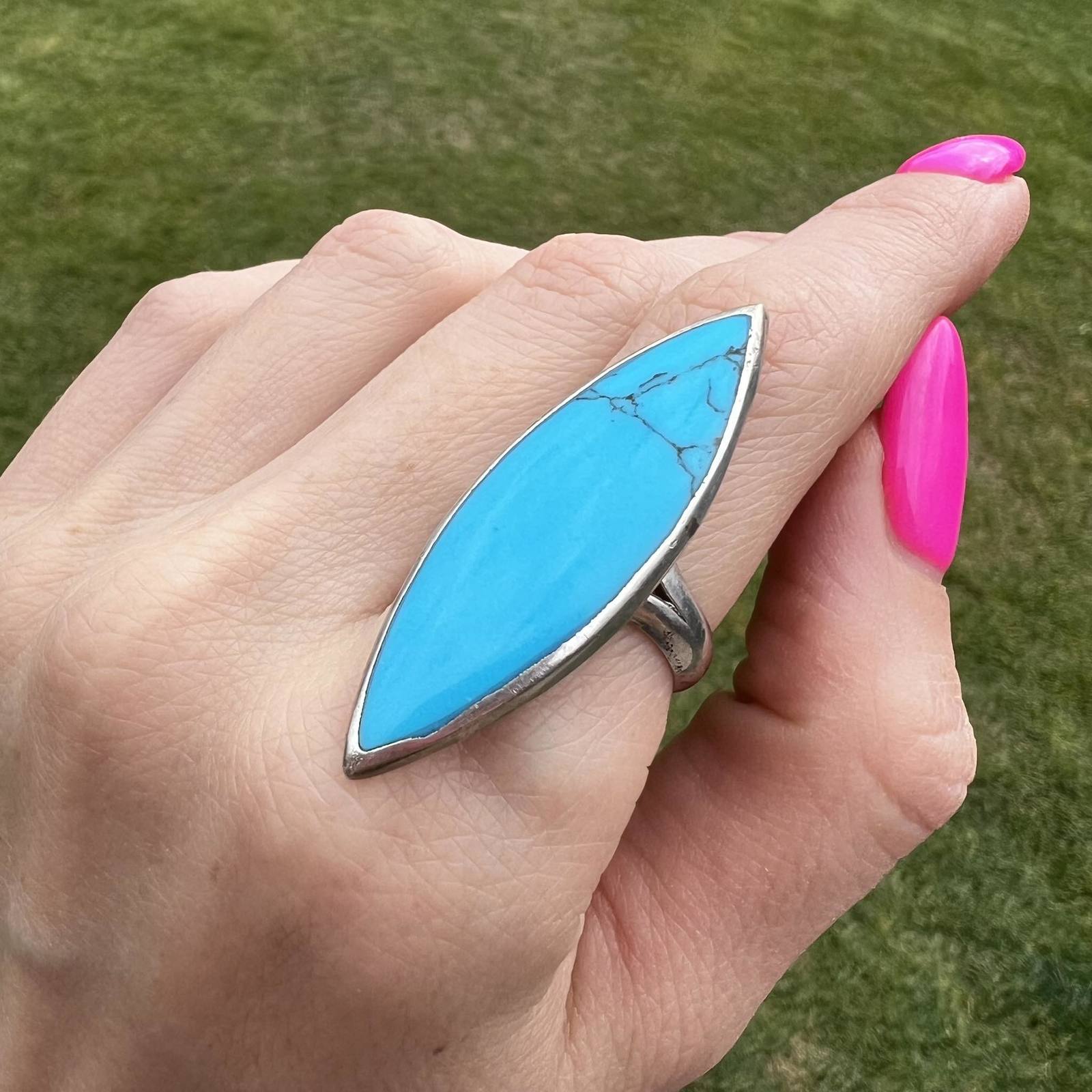 Big Vintage Sterling Silver 925 Ring Women's Jewelry Turquoise Stone Size 8