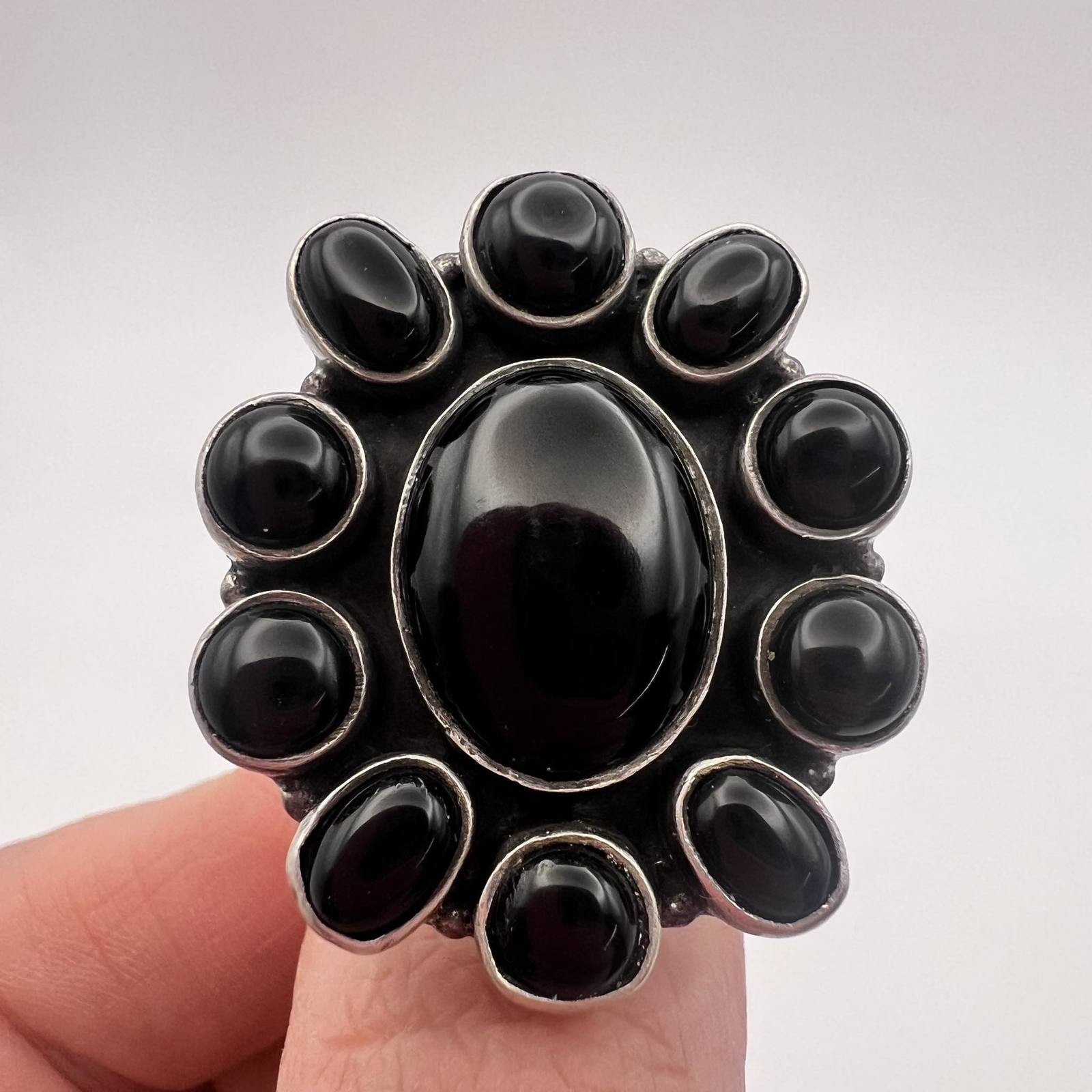 Huge Sterling Silver 925 Hand Made Women's Jewelry Ring Natural Black Onyx Size7