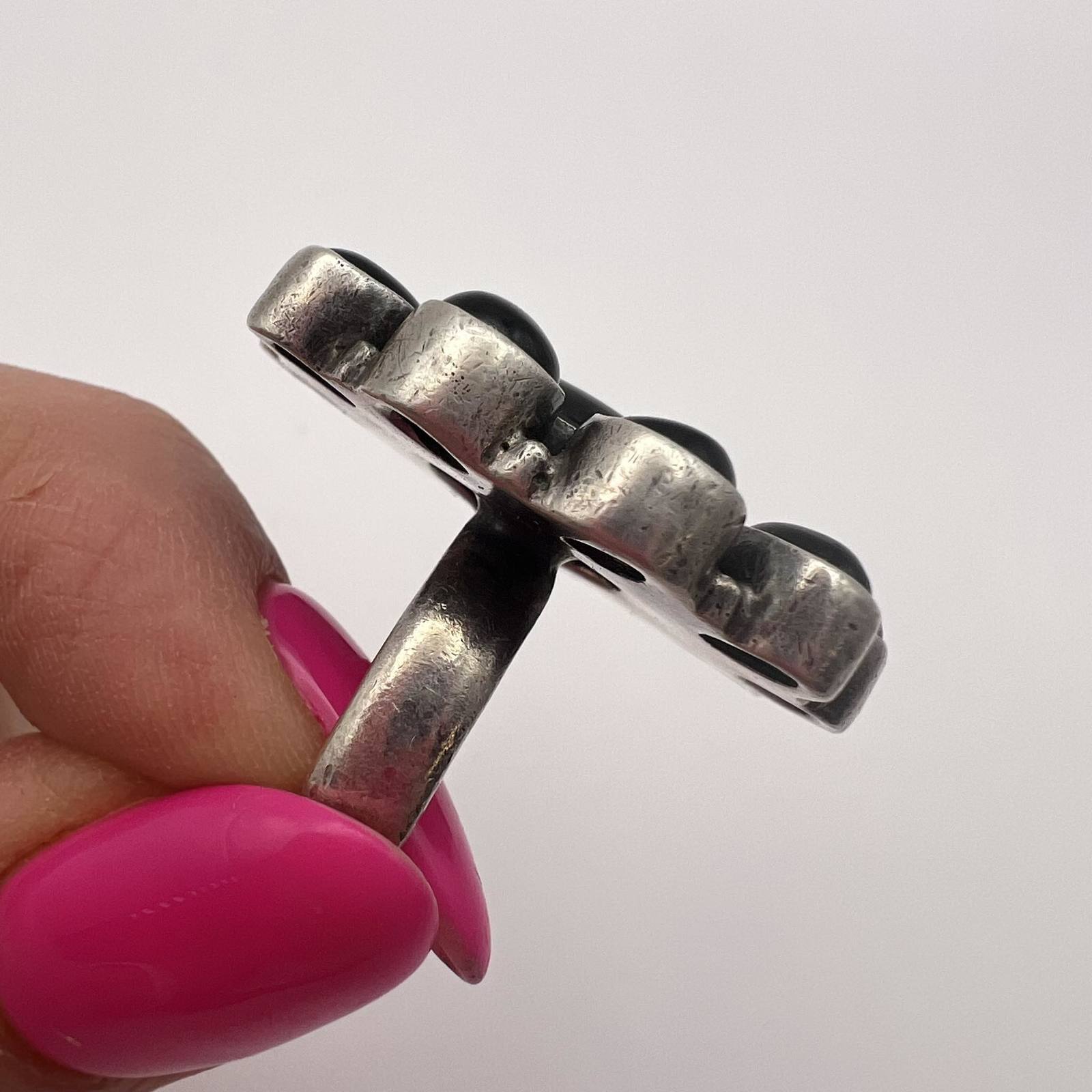 Unusual Huge Sterling Silver 925 Hand Made Women's Jewelry Ring Natural Onyx