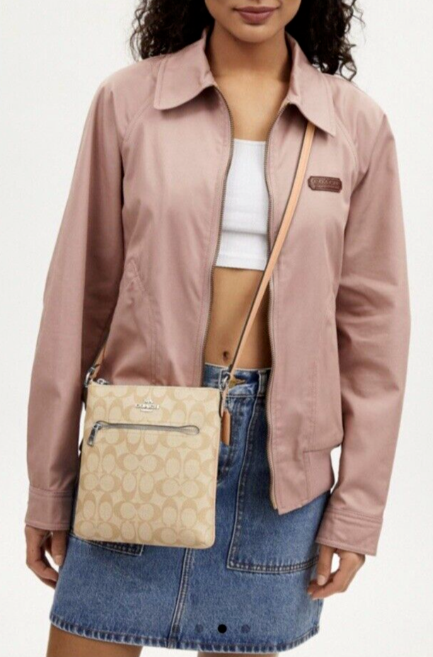 New Coach CS182 Mini Rowan File Bag Logo Signature Light Khaki / Faded Blush