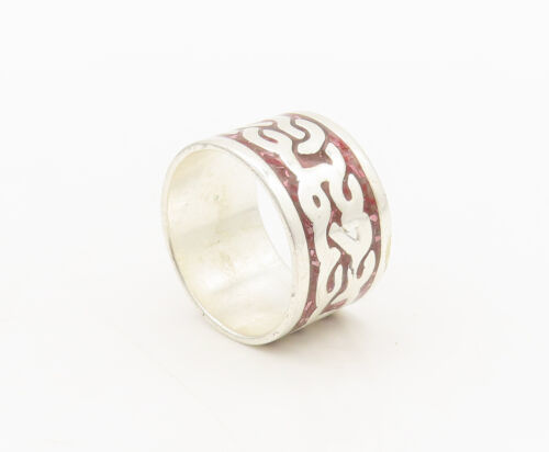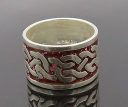 MEXICO 925 Silver - Vintage Swirly Celtic Crushed Stones Ring Sz 12 - RG27329