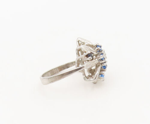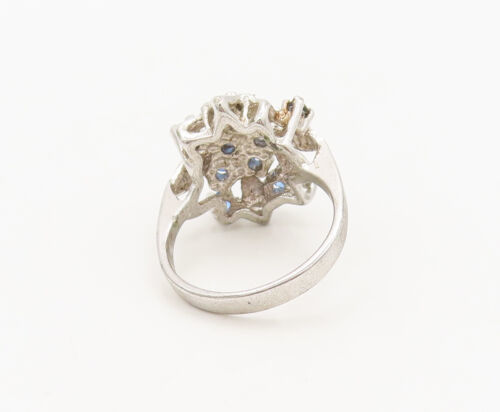 UNCAS 925 Silver - Vintage Carved Blue Topaz Beaded Floral Ring Sz 6 - RG27325