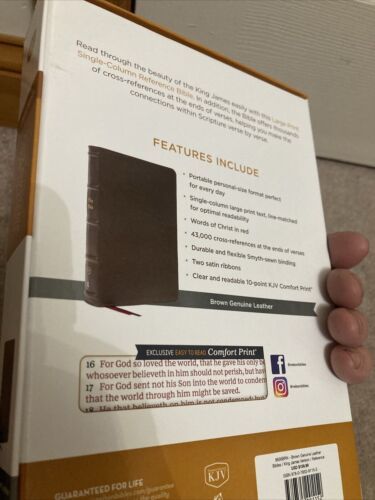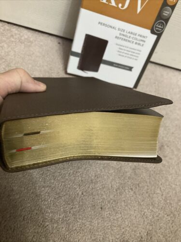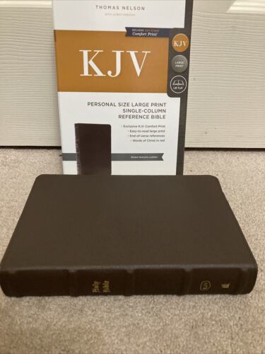 KJV PERSONAL SIZE LARGE PRINT SINGLE COLUMN REFERENC BIBLE BROWN GENUINE LEATHER