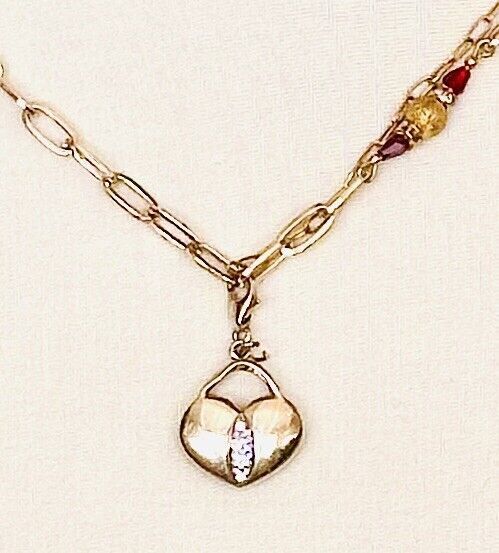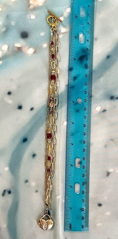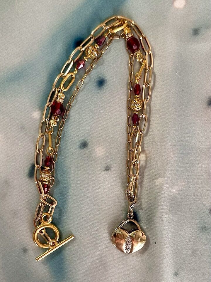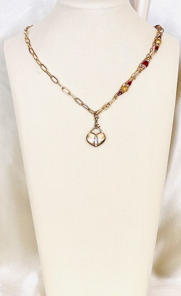Unusual Asymmetrical Gold SS Heart with Paper Clip Chain Accented wRed Crystals