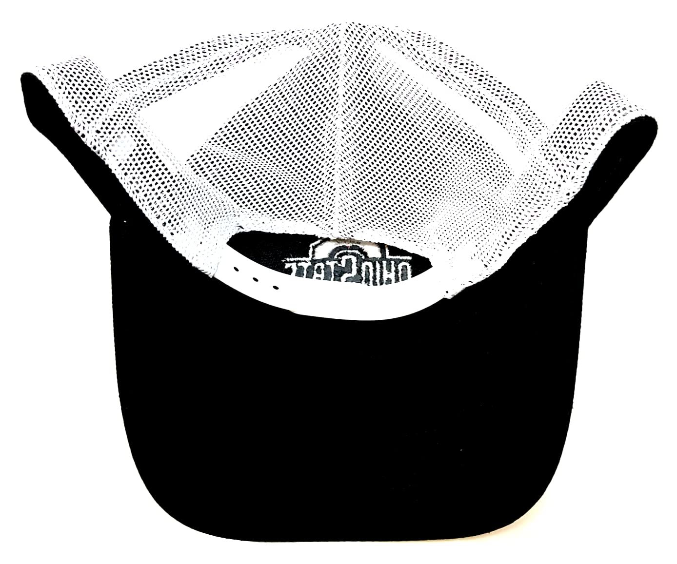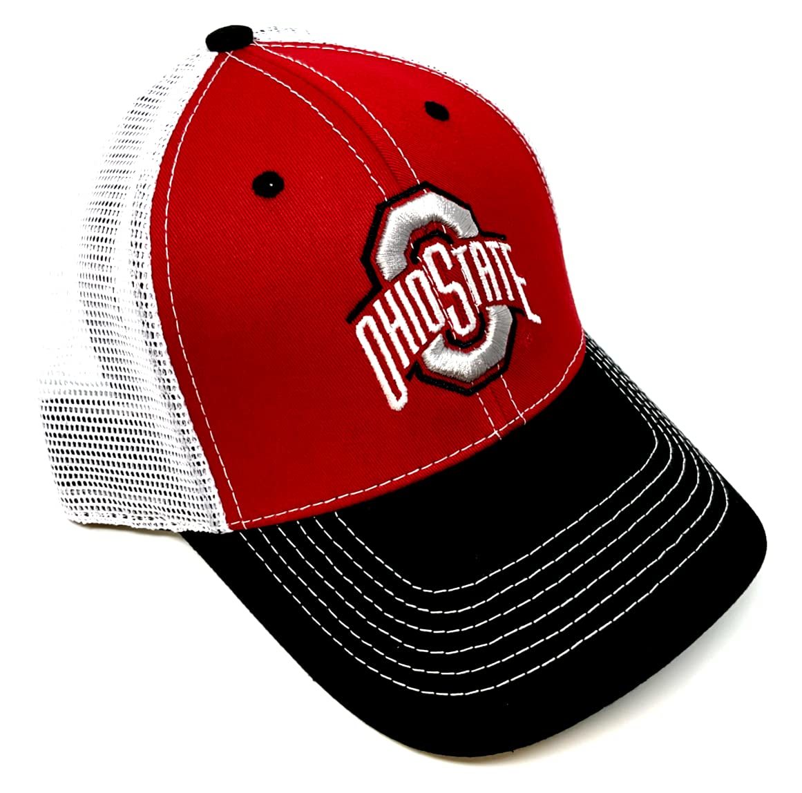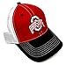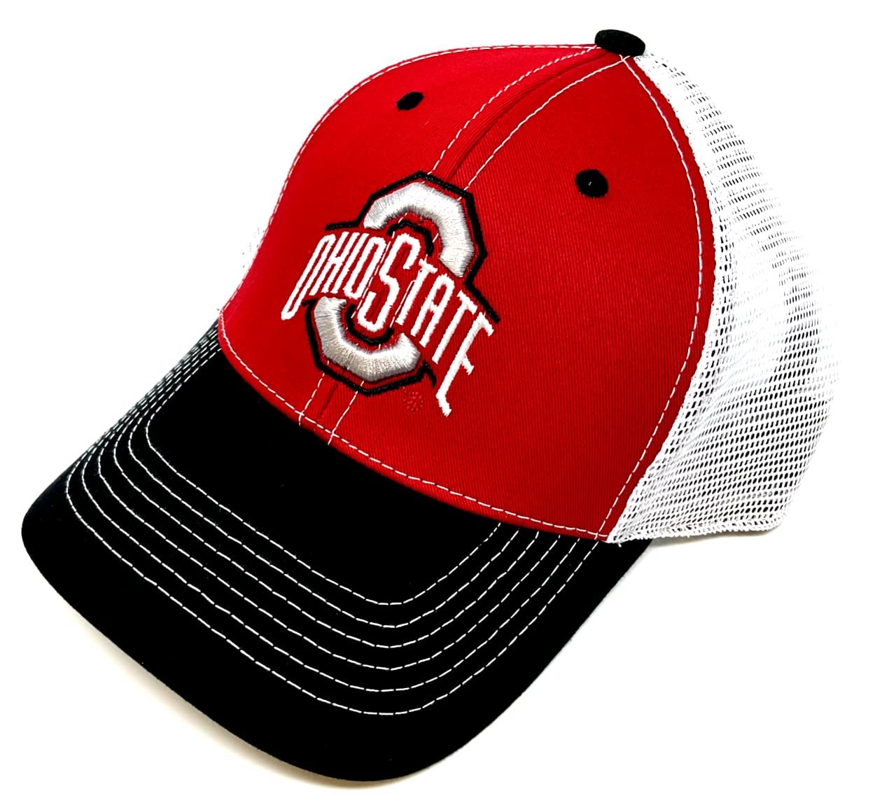 Eliminator Ohio State Buckeyes Logo Curved Bill Mesh Trucker Snapback Hat. Cap design features a 3D embroidered Ohio State University Buckeyes logo on the front 2 Red panels with a solid white mesh back and black curved bill. Adjustable snapback closure makes this a One Size Fits Most hat. Perfect for the Ohio State alumni or the fan in your life.