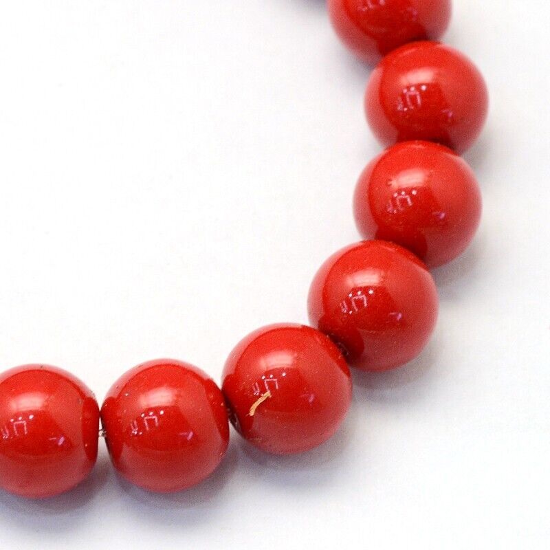 Description: Baking Painted Pearlized Glass Pearl Round Bead Strands, Red