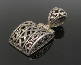 925 Sterling Silver - Vintage Shiny Patterned Dome Drop Pendant - PT18873