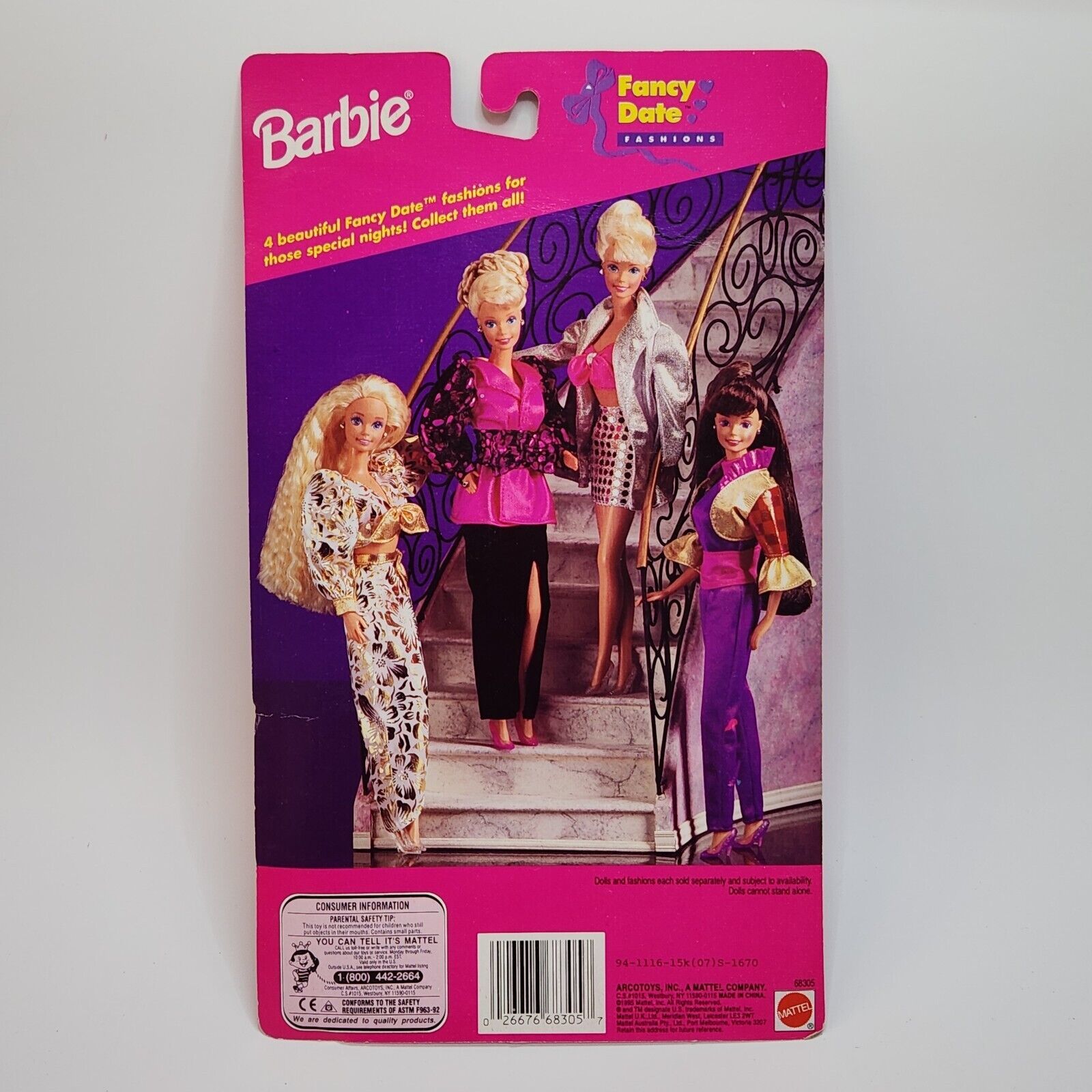 VINTAGE 1995 MATTEL BARBIE FANCY DATE PURPLE + BLACK OUTFIT # 68305 NEW SEALED
