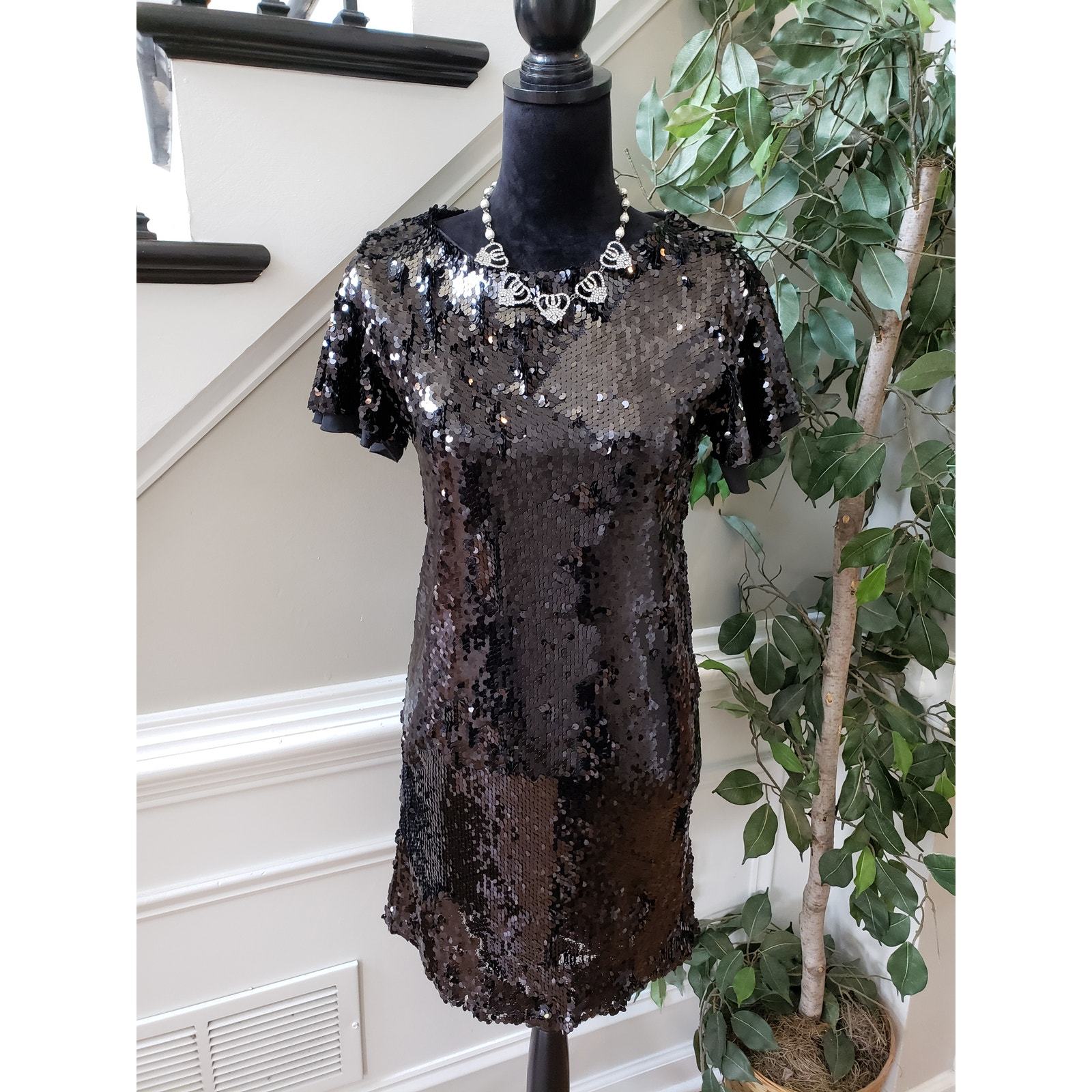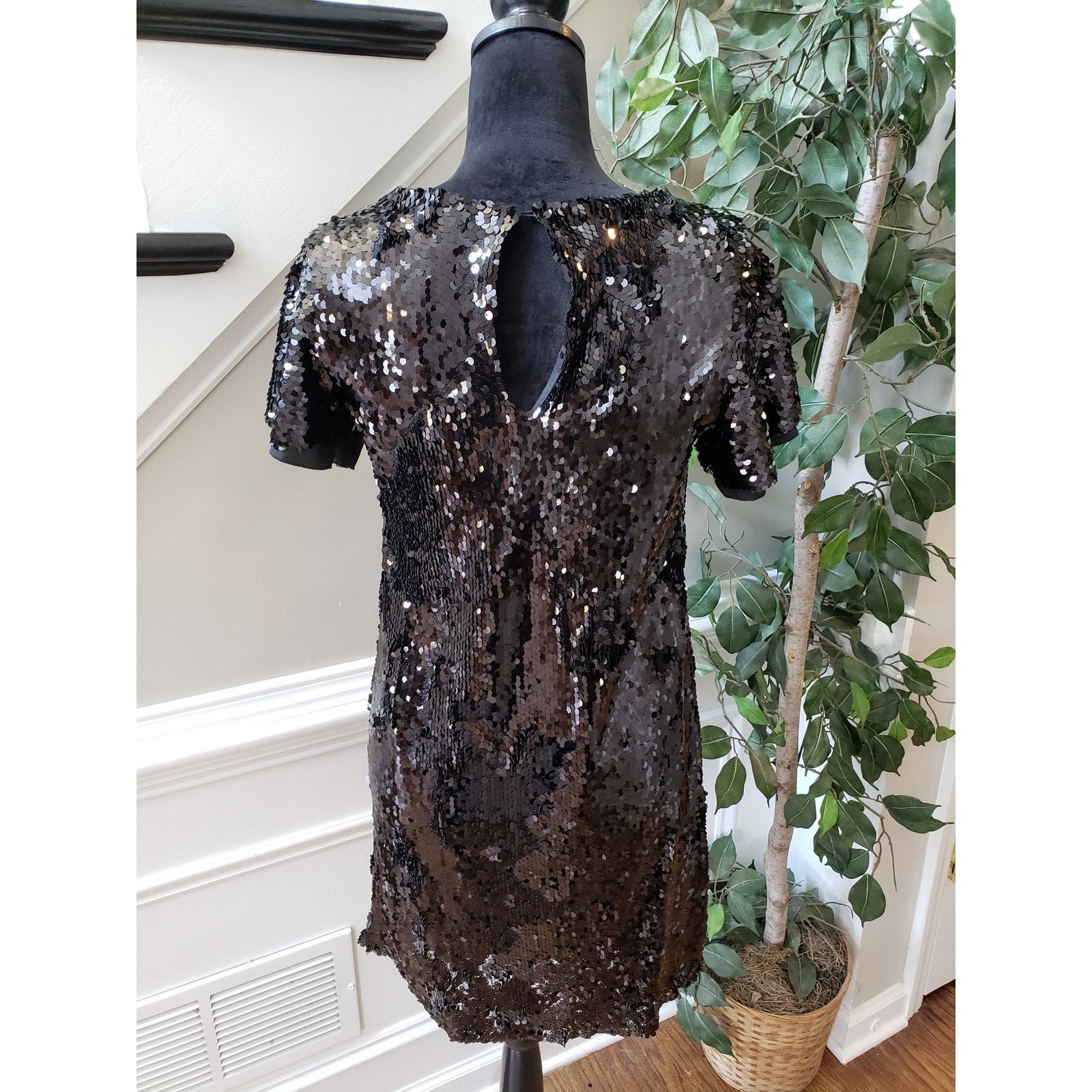 Zara Basic Cocktail Dress Womens XS Black Sequin Lined Short Sleeve Round Neck