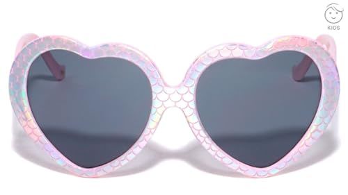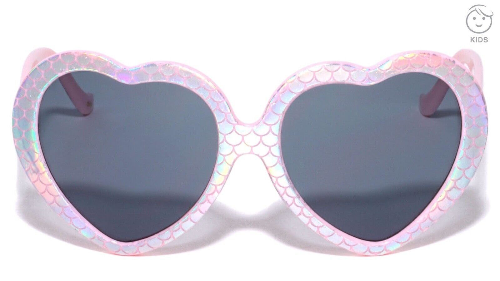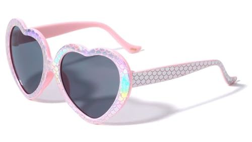 Dweebzilla Kids Youth Girls Heart Shaped Mermaid Print Cute Retro Sunglasses (Pi