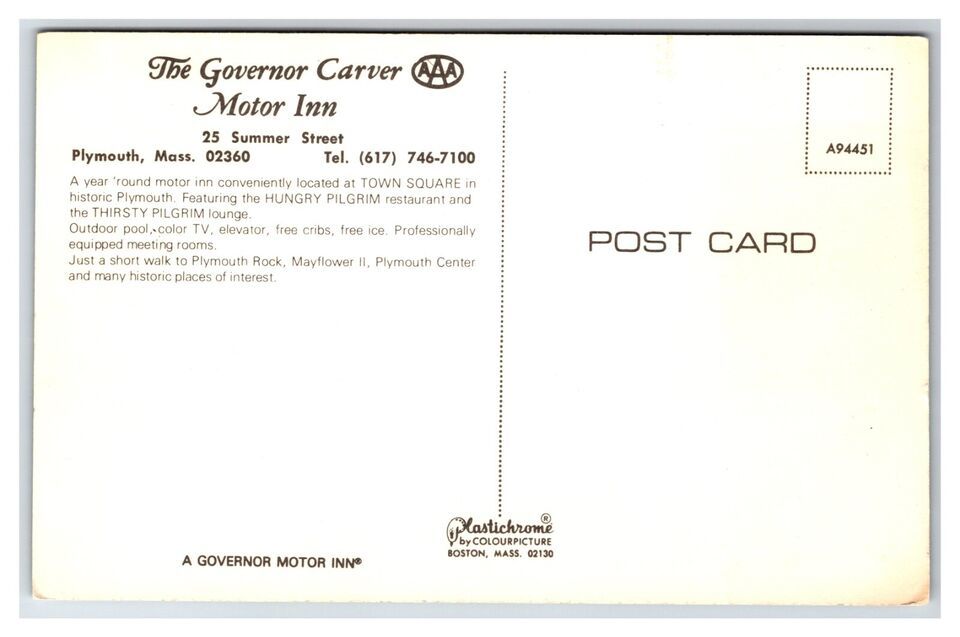 Governor Carver Motor Inn Motel Plymouth and 50 similar items