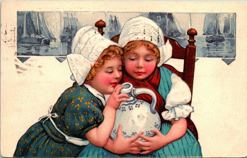 Vtg Postcard 1910s Dutch Girl Children With Milk Jug Pitcher Embossed added to cart.
