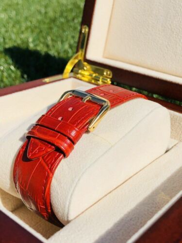 - Red Alligator Leather Band with Gold Plated Classic Buckle