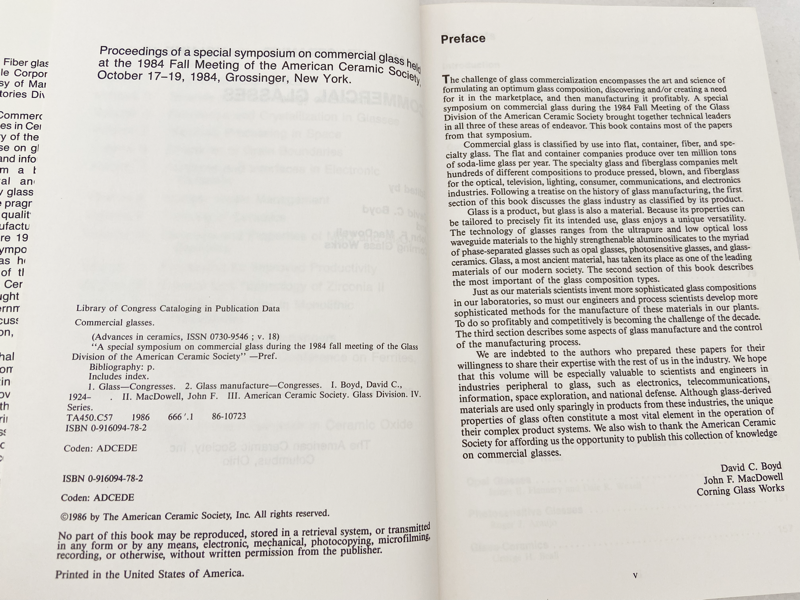 1986 HC Commercial Glasses (Advances in Ceramics) by Boyd, David C.