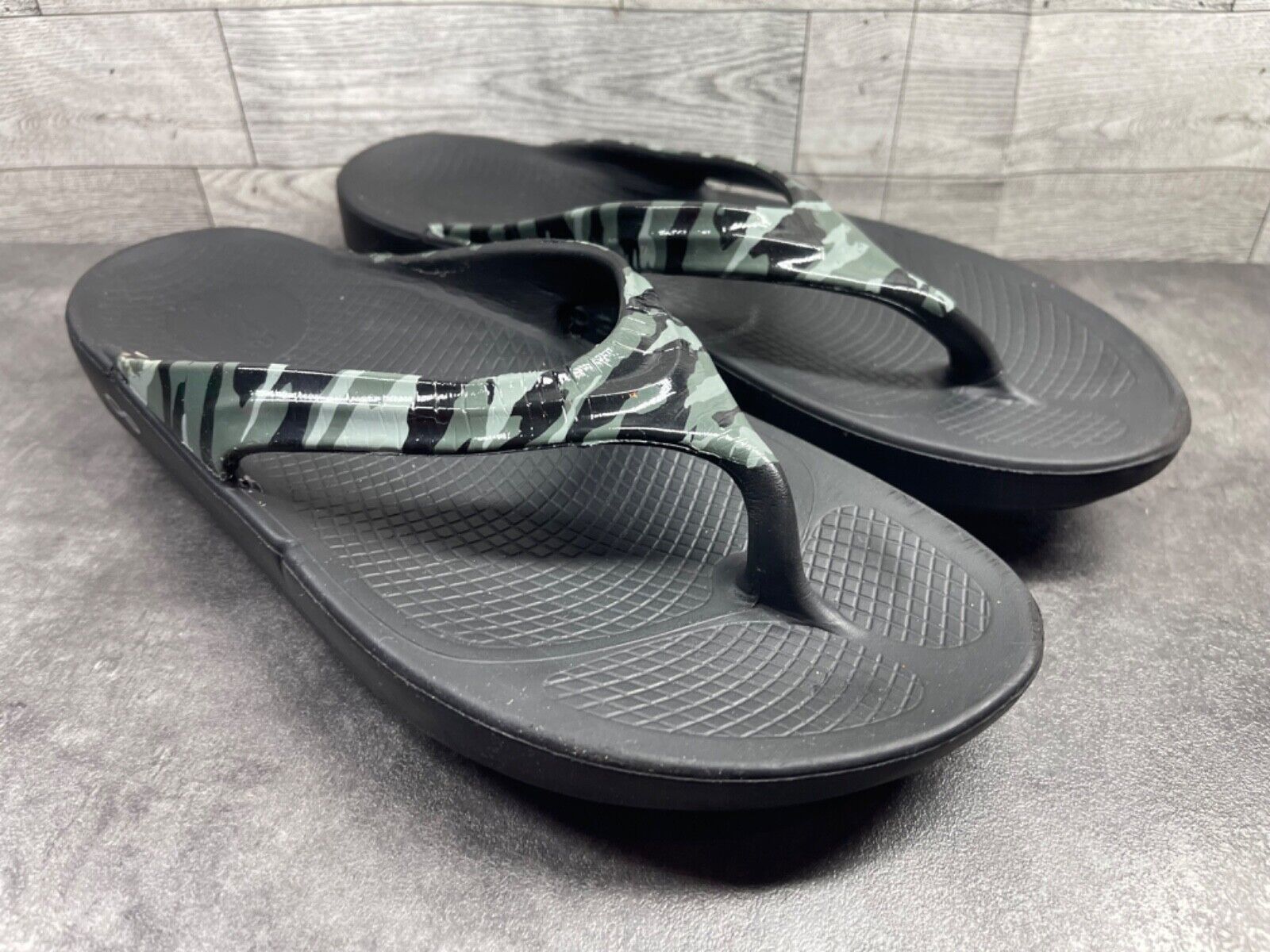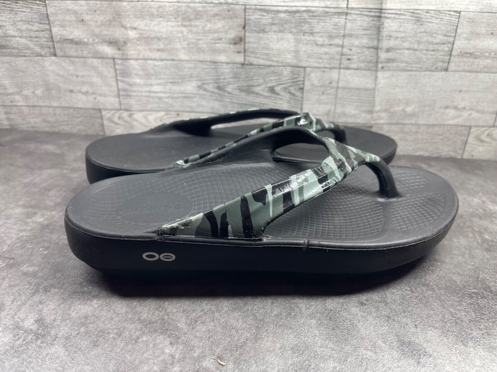 OOfos Flip Flop Sandals Women 9M OOlala Shoes Green Camp Thong Recovery Walking