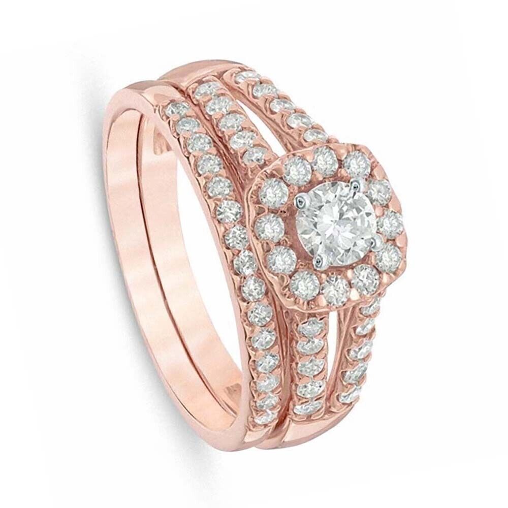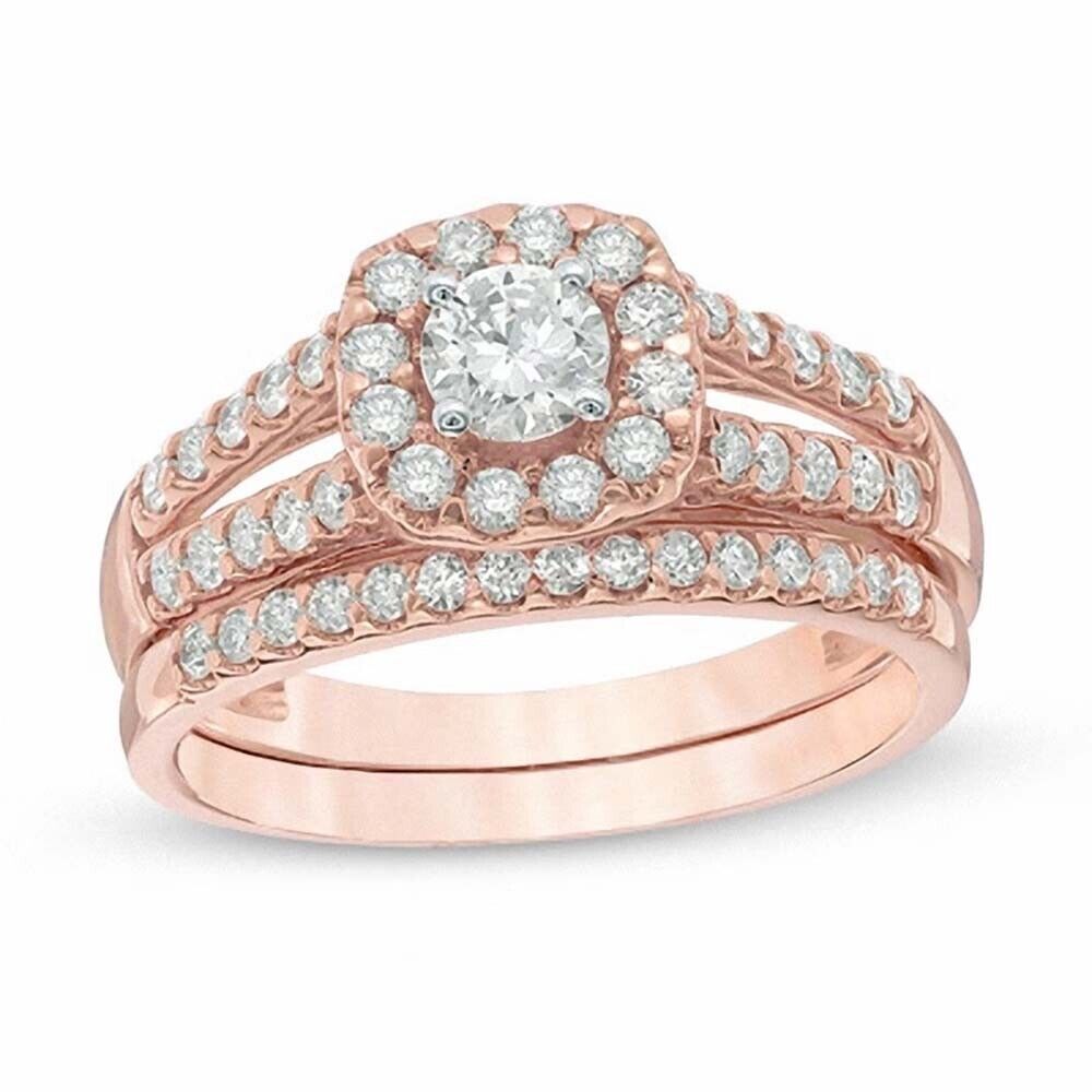 0.60 Ctw Lab Created Diamond 14K Rose Gold Plated Halo Engagement Bridal Ring