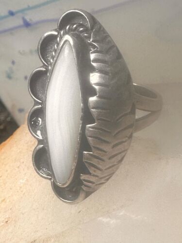 Long agate ring Navajo leaf leaves Size 8.25 sterling silver women