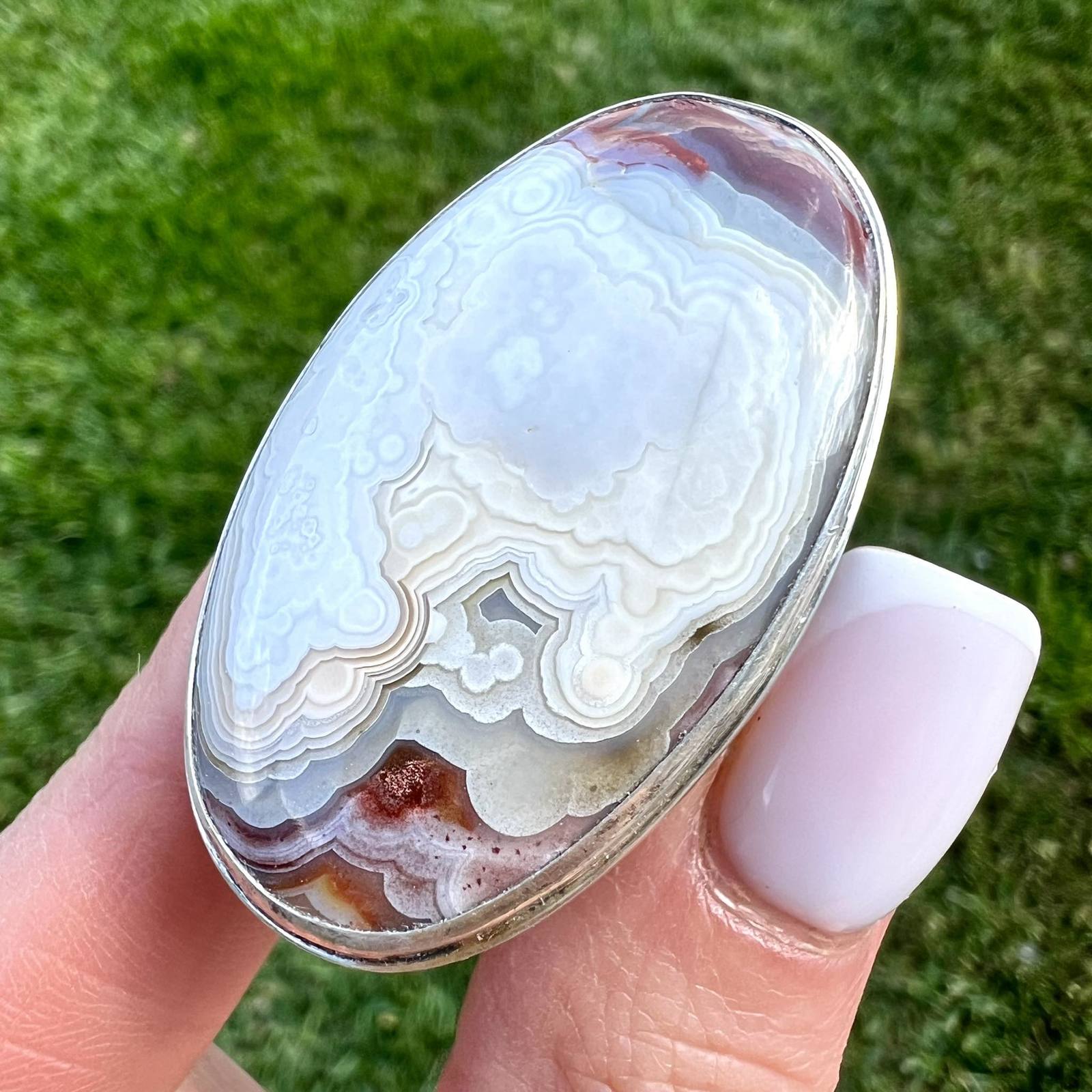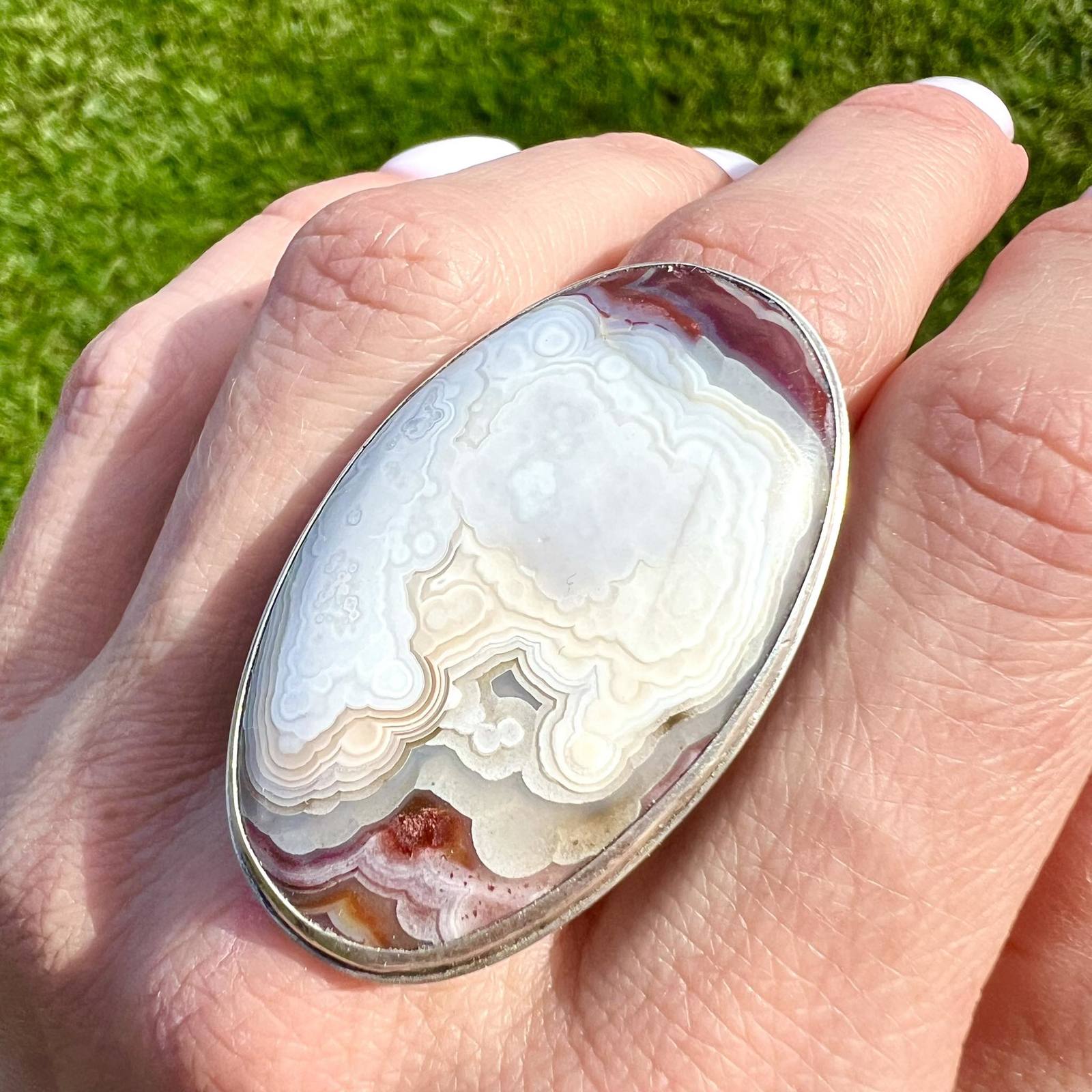 Gorgeous Massive Sterling Silver 925 Natural Agate Gemstone Women's Jewelry Ring