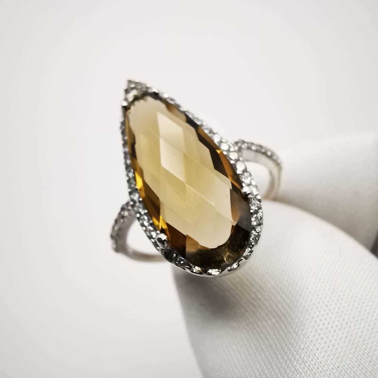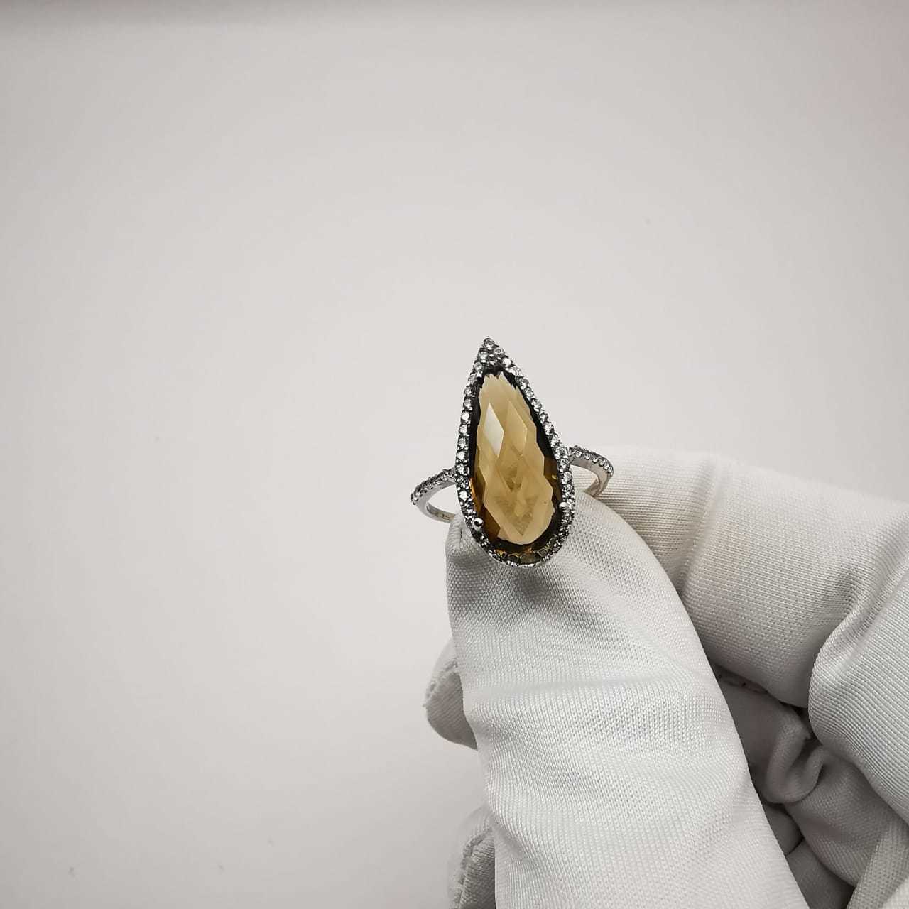New Stylish Women's Ring "Morning Dew" 925 Sterling Silver, Citrine, Zircon
