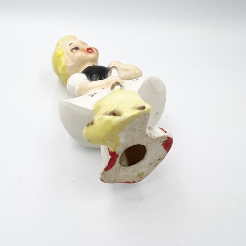 Vtg Ucago Girl Figurine Japan Holding Broom Rosy Cheeks Blonde