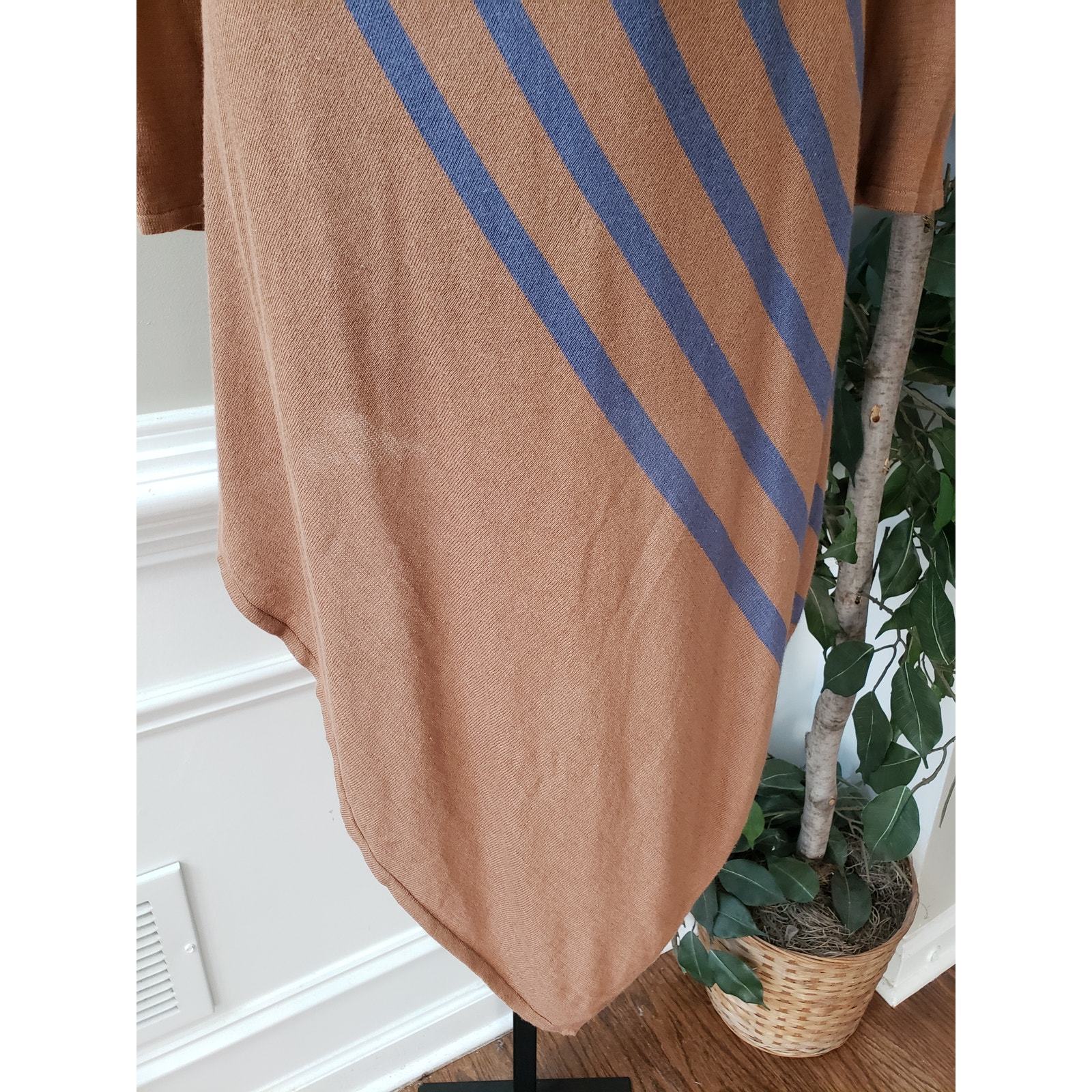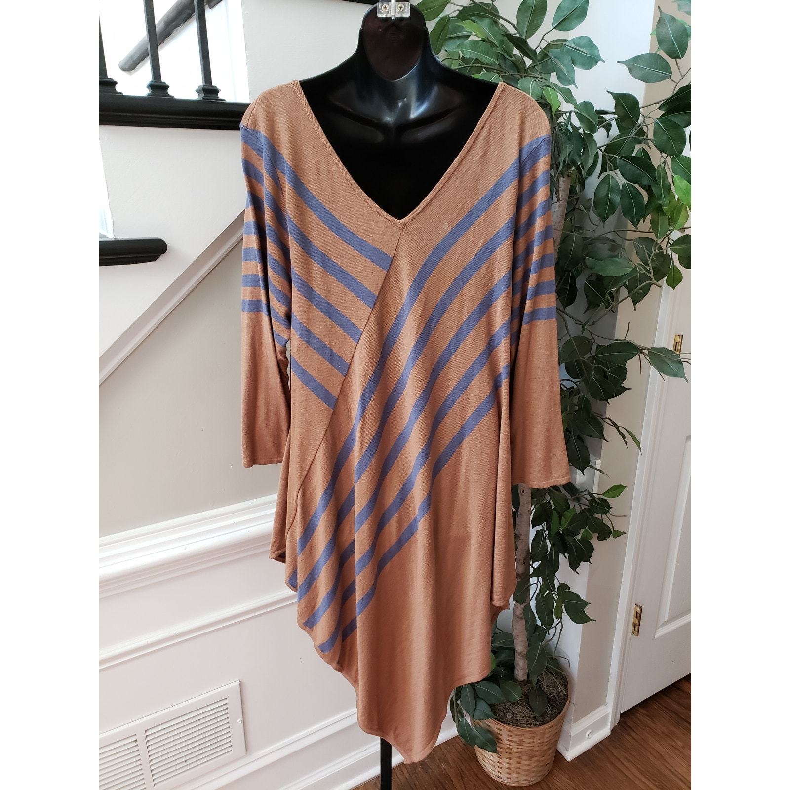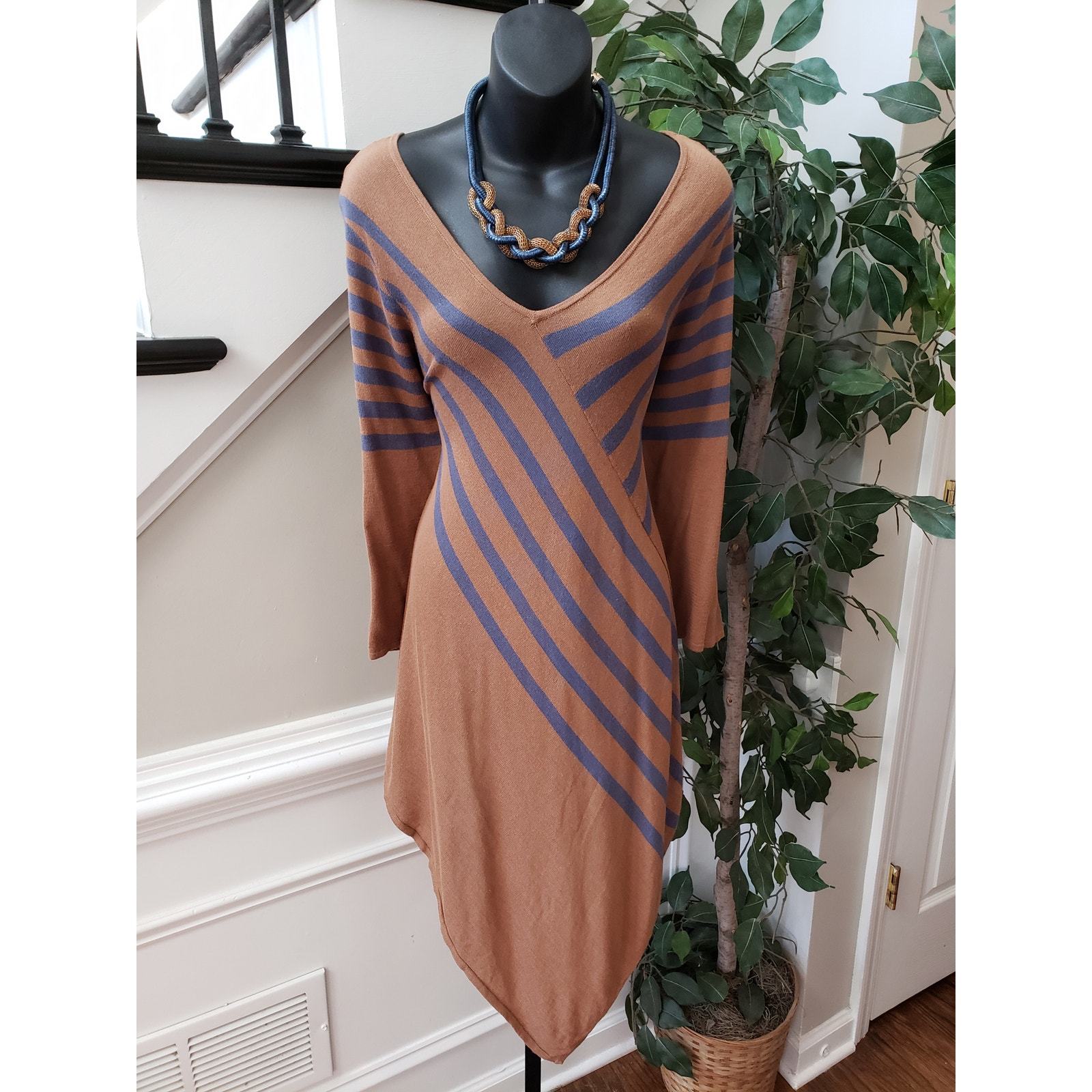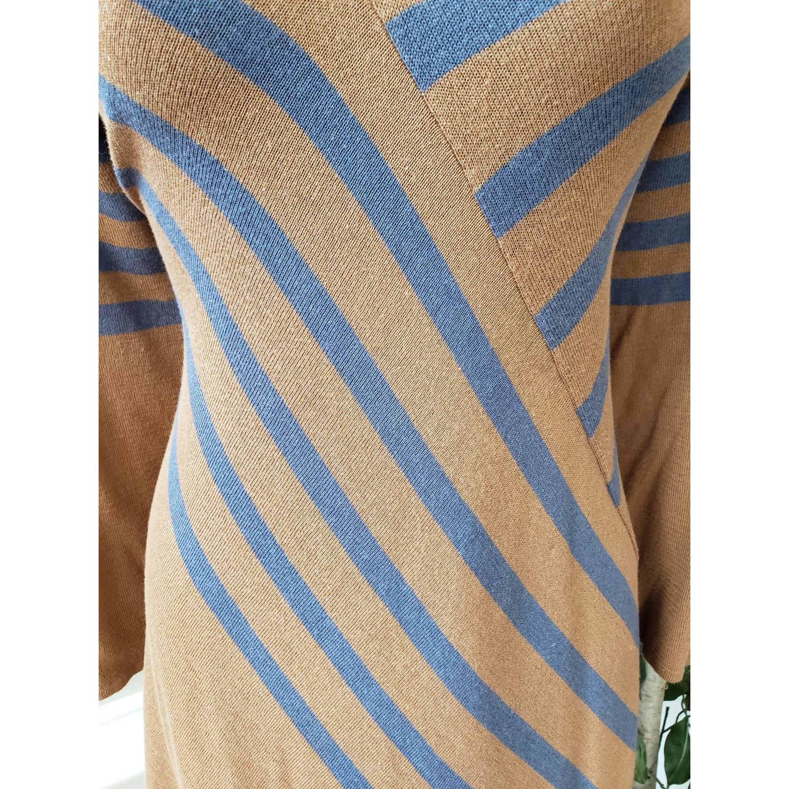 NY Collection Jersey Dress Women's XL Brown Striped Long Sleeve Handkerchief Hem