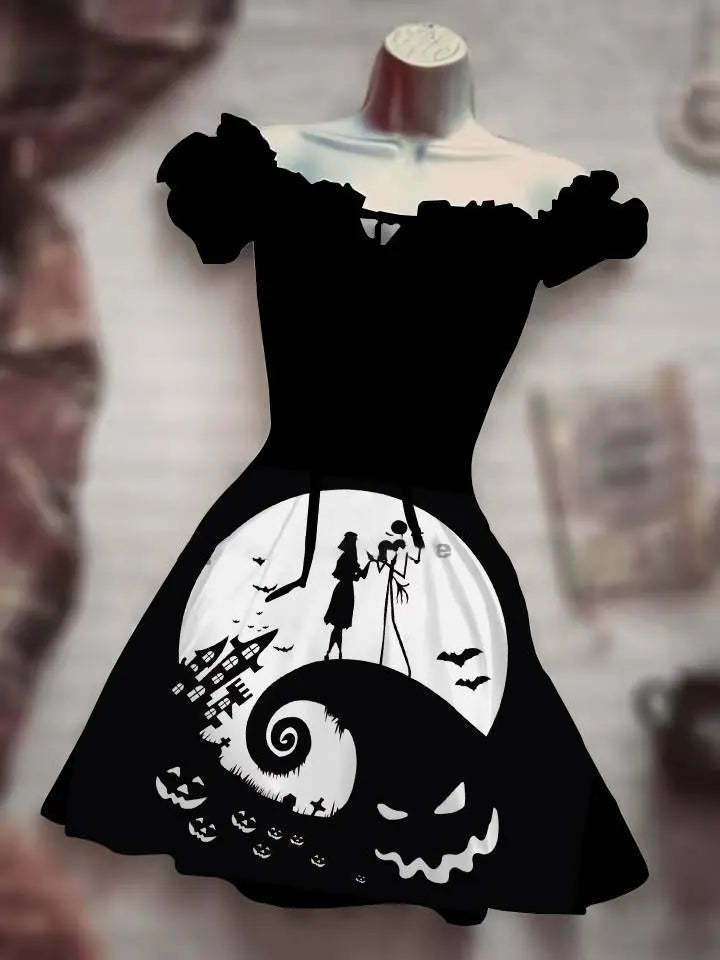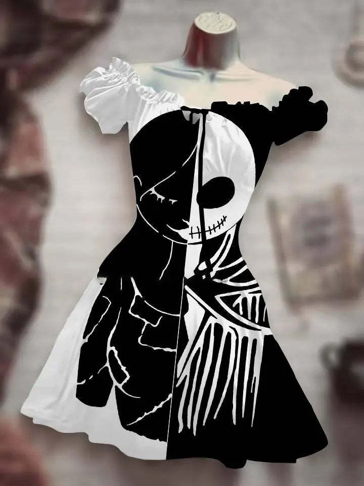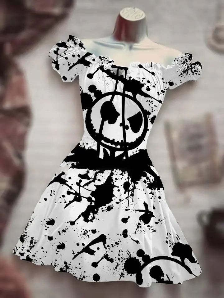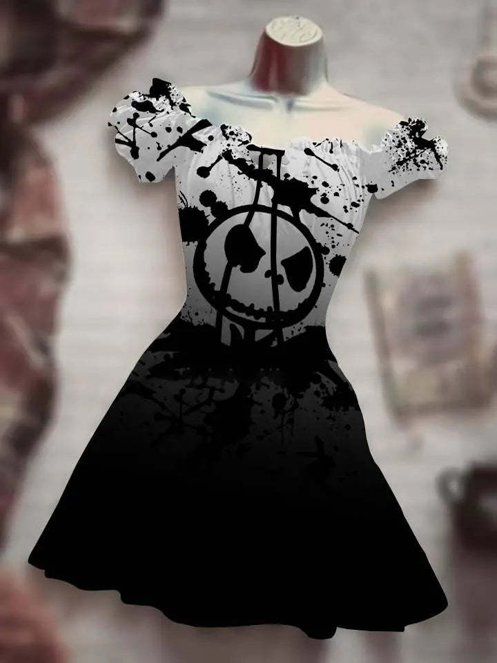 This Summer, choose this 3D Print Horror Skull White Light Halloween Dress made of Polyester material, with a slight stretch, puff sleeves, and a loose A-line silhouette. The dress features a square neckline and a sweet collar style, with a knee-length and mini dress and an empire waistline. It is designed with short sleeves (4-16 inches) and is crafted with knit weaving techniques. Made in Mainland China, this dress is perfect for the hot season and can be easily put on with its pullover closure. It is suitable for women who appreciate quality and fashion.