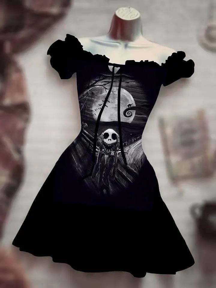 Summer 3D Print Horror Skull White Light Halloween Dress