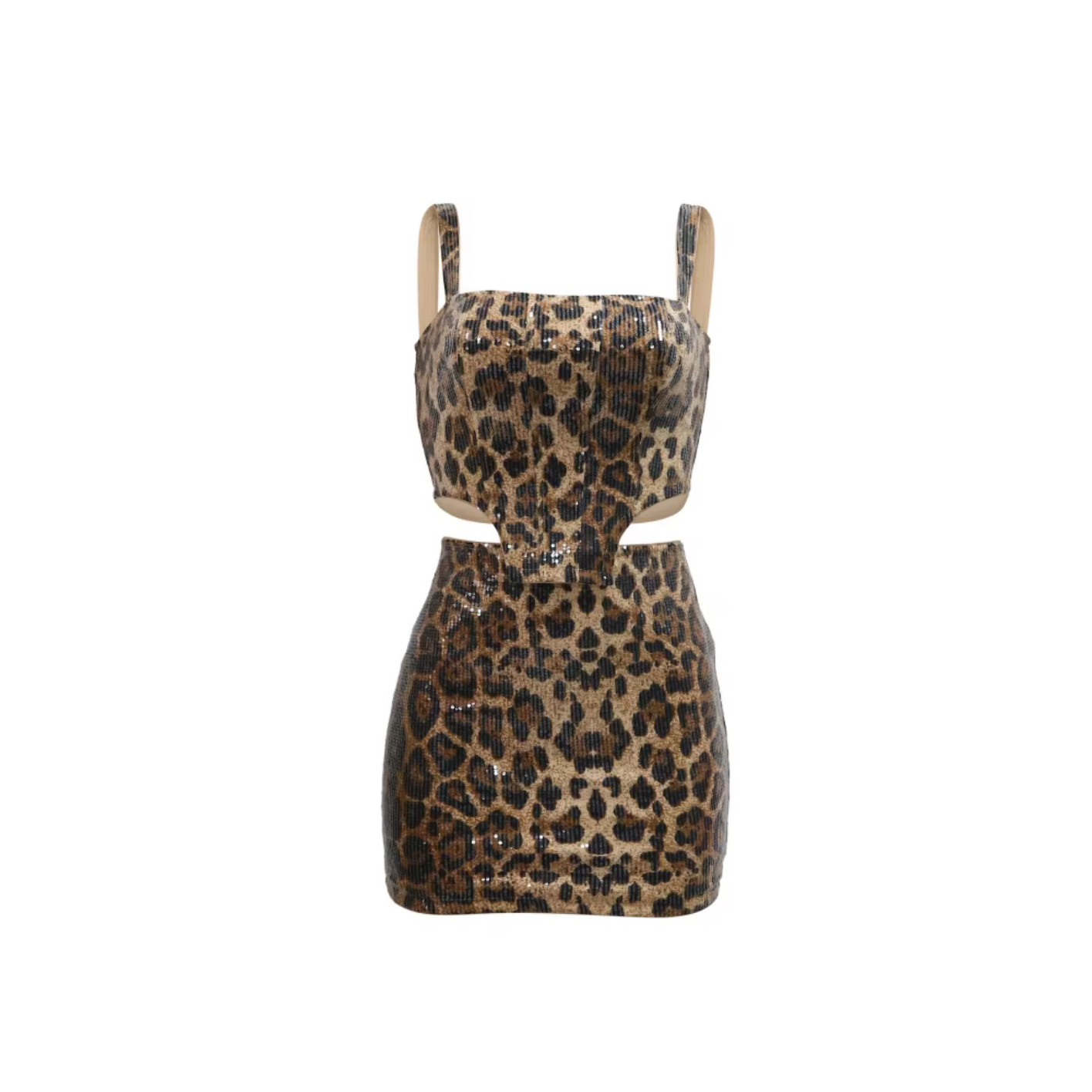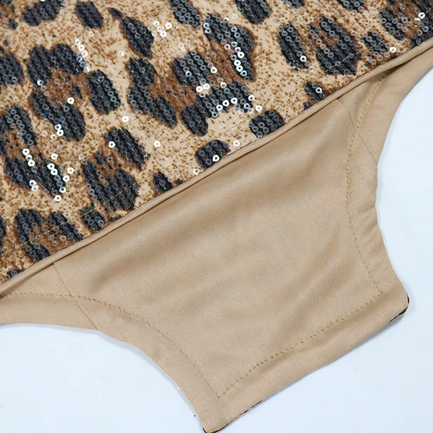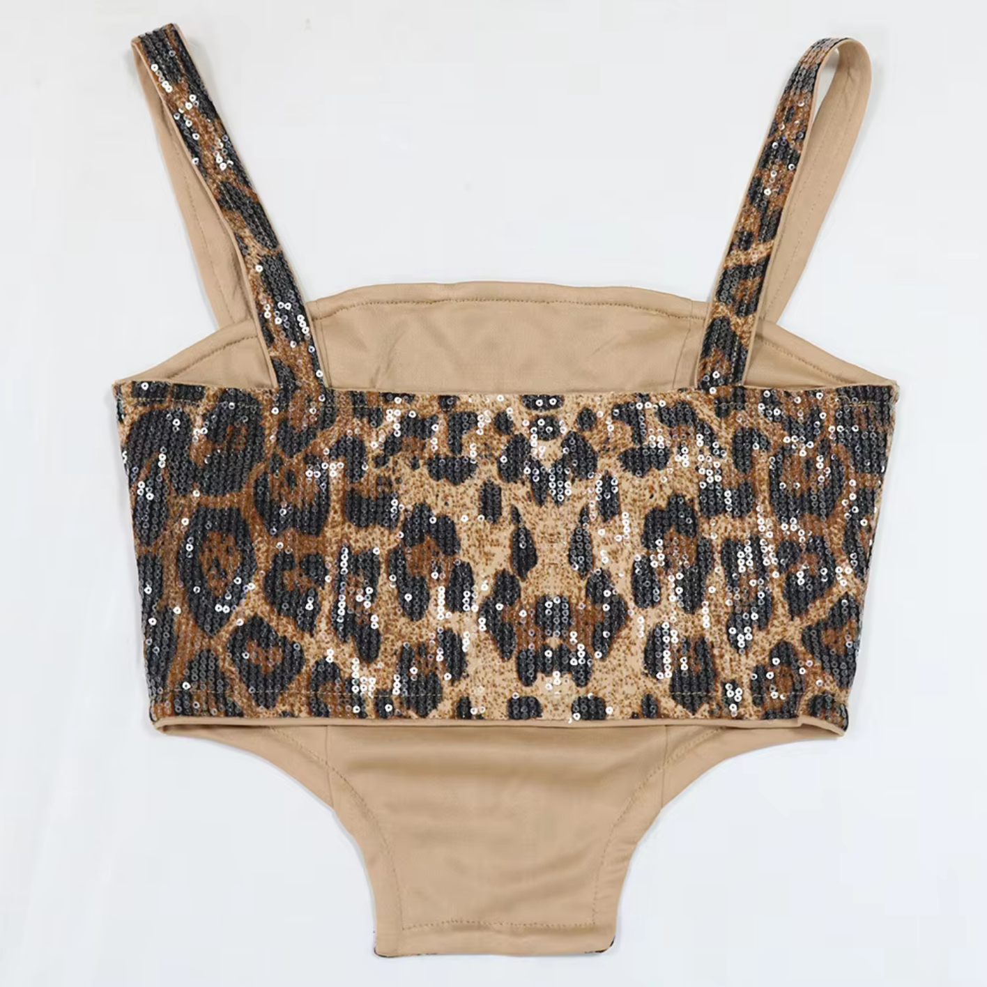Sexy Leopard Print Sequin Irregular Tank Top And Mini Skirts Club Suits