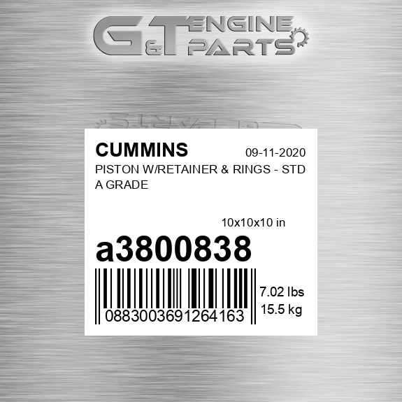 A3800838 PISTON W/RETAINER & RINGS - STD A GRADE fits CUMMINS (NEW AFTERMARKET)
