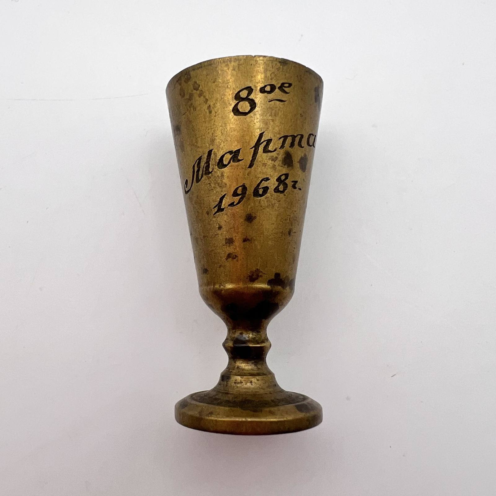 1968's Miniature Vintage Russian Soviet Brass Copper Hand Etched Vodka Shot Cup Signed