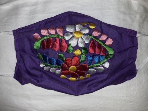 artesanal mexican face mask embroidered washable cubre bocas adult one size