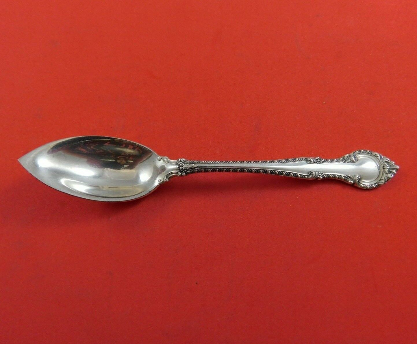 Sterling silver original Grapefruit Spoon 5 3/4" in the pattern English Gadroon by Gorham. It is not monogrammed and is in excellent condition.