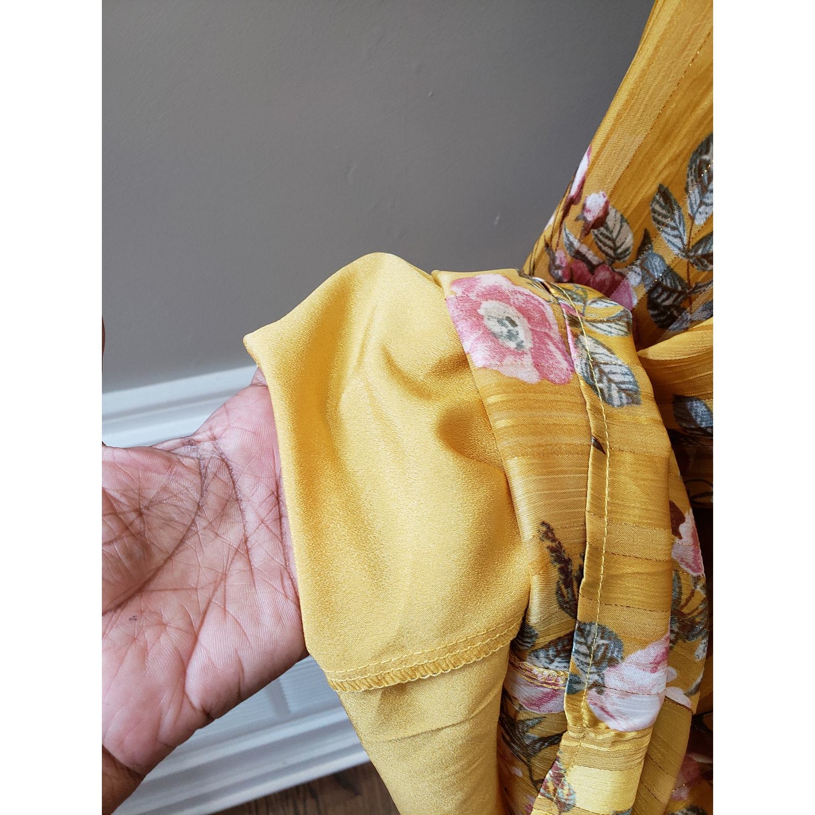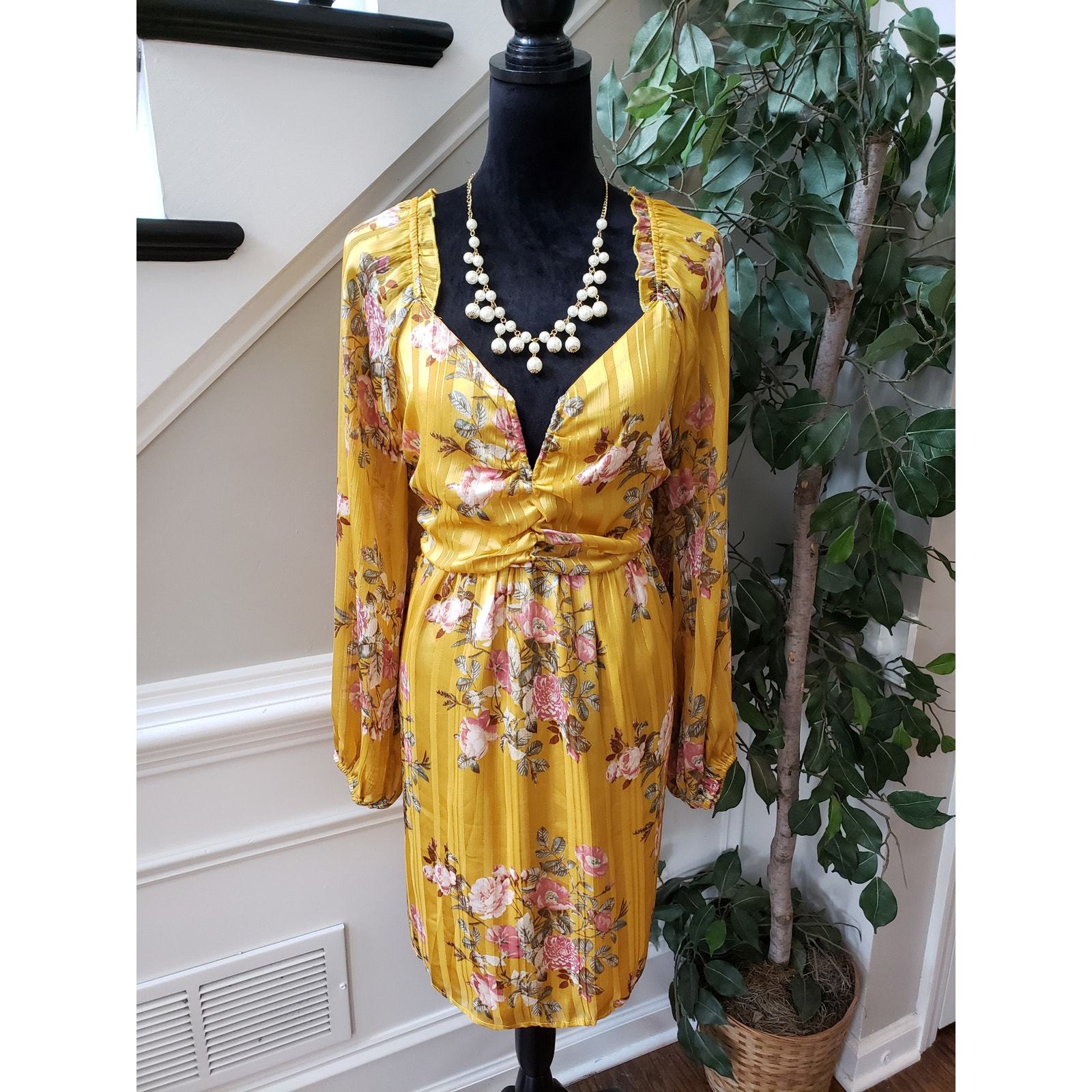 Forever 21 Sheath Dress Womens OX Yellow Floral Keyhole Back Bow Sweetheart Neck