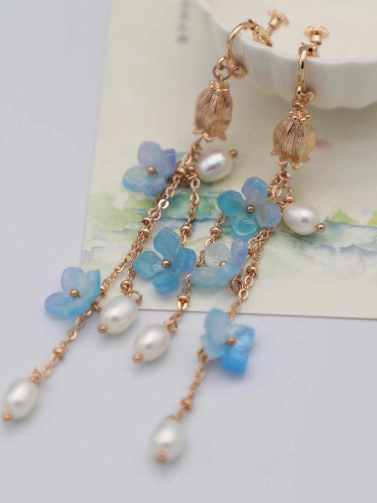 Color classification: light blue red copper ear hook pairs, light blue purple ear clips, light blue purple 925 silver ear hook pairs