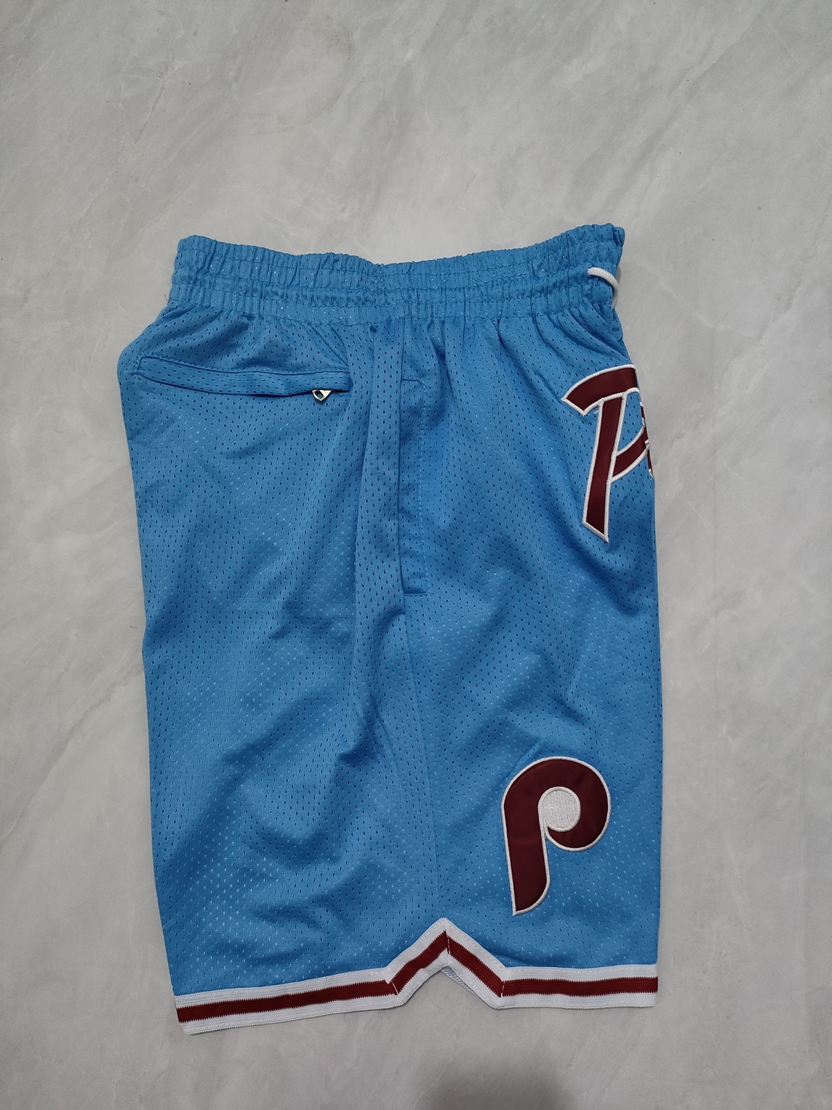 Philadelphia Phillies Classic Blue Mesh Shorts Two Back Pockets Hidden Zipper