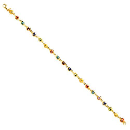 Genuine 14k Yellow Gold 4-mm Multi-color Enamel Evil Eye 7" Women's Bracelet