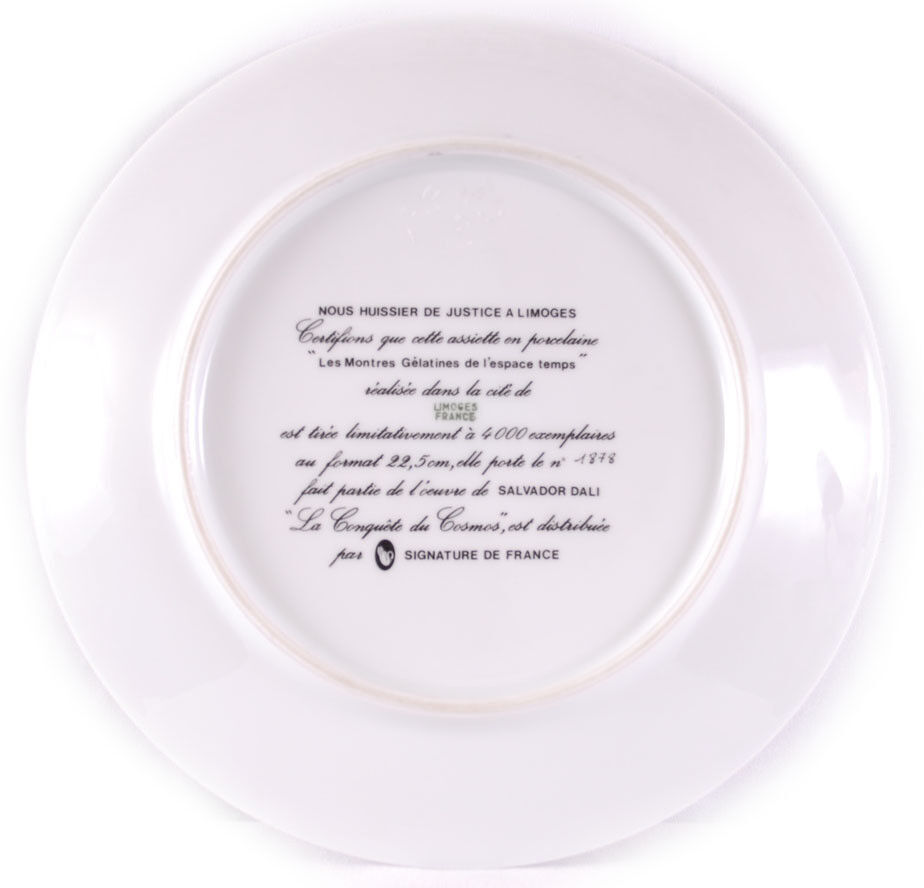"Les Montres Gelatines de l'espace temps" realisee dans la cite de LIMOGES FRANCE est tiree limitativement a 4000 exemplaires au format 22,5cm, elle porte le n 1878 fait partie de l'oeuvre de SALVADOR DALI "La Conquete du Cosmos", est distribuee par SIGNATURE DE FRANCE