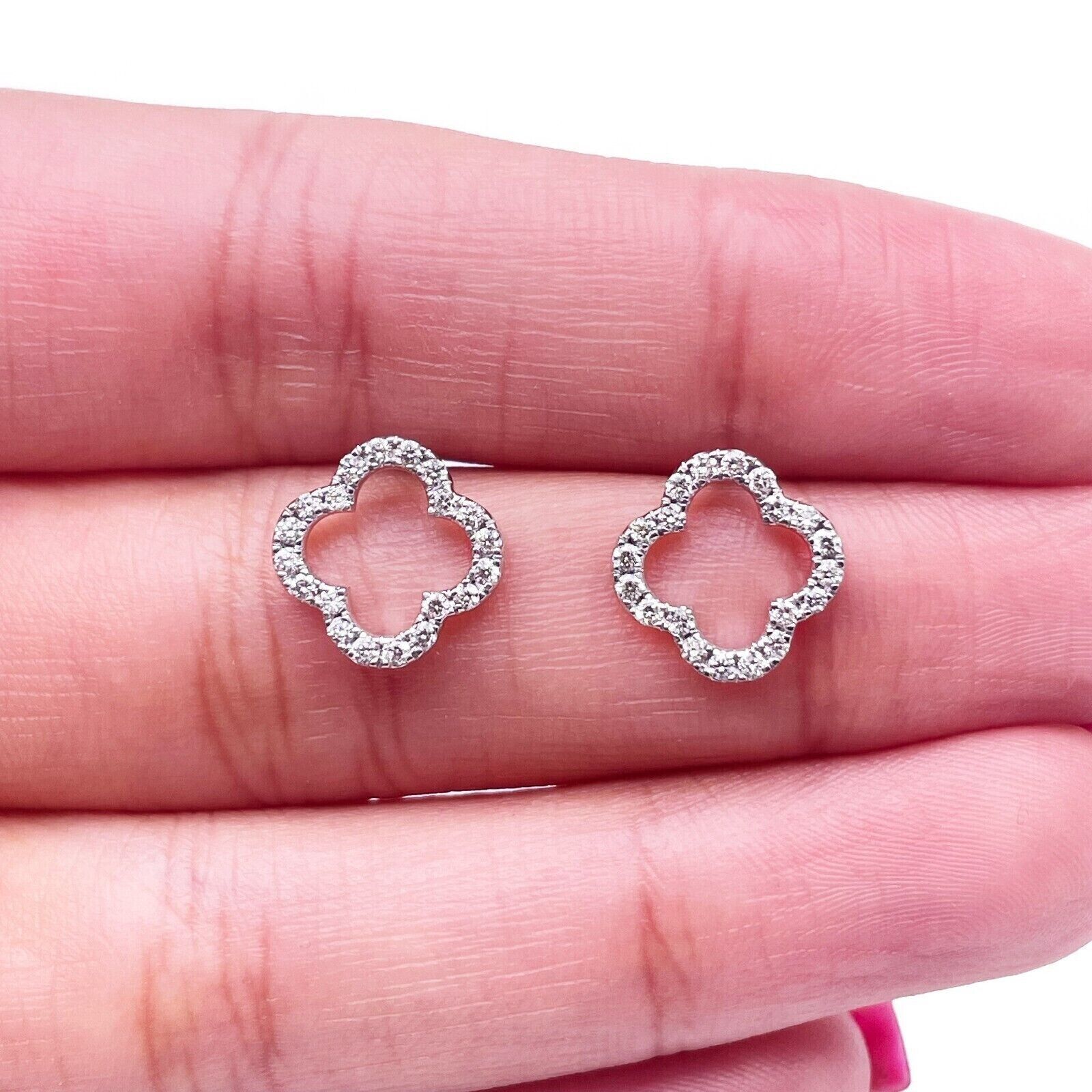 2Ct Round Cut Lab-Created Diamond Clover Stud Earrings 14K White Gold Plated