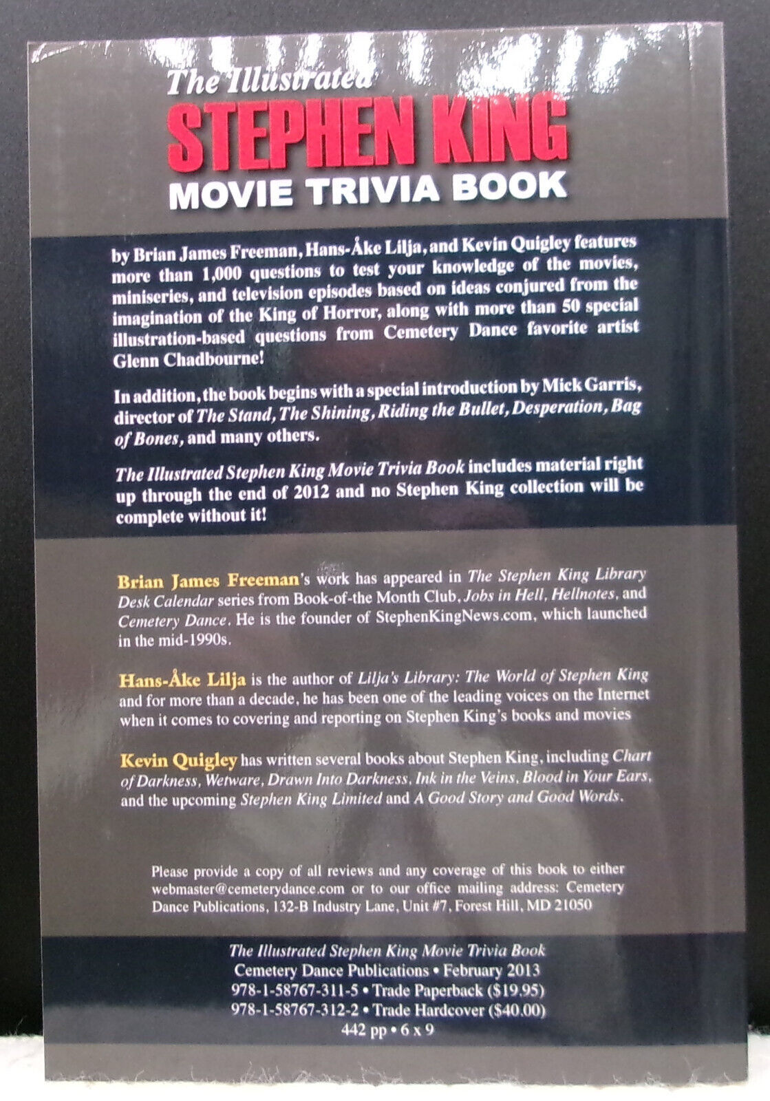 THE ILLUSTRATED STEPHEN KING MOVIE TRIVIA BOOK Advance Uncorrected Proof Fine