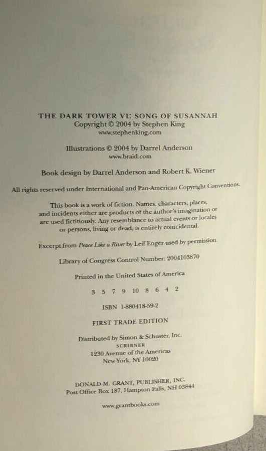 SONG OF SUSANNAH Dark Tower VI by Stephen King (2004) Donald M Grant hardcover
