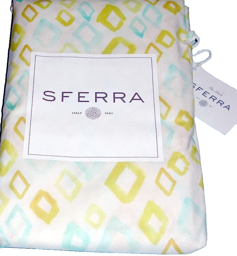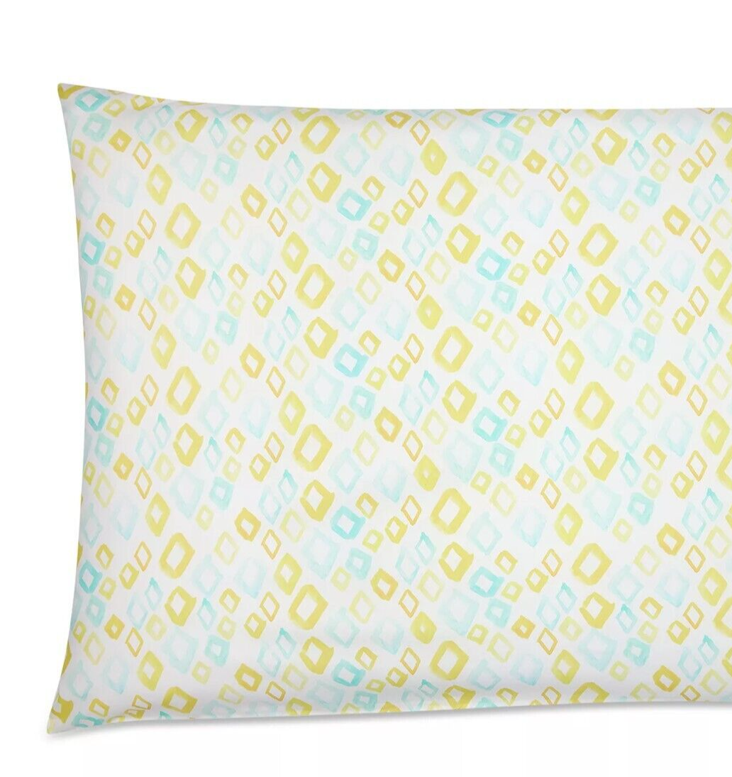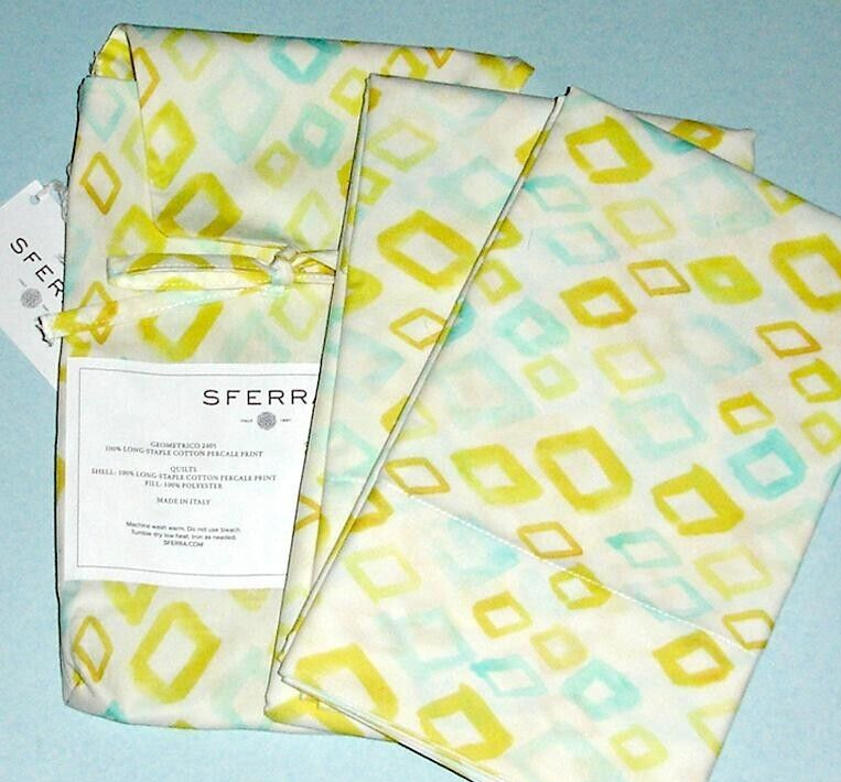 Sferra Geometrico Standard Pillowcases Pair Aqua/Yellow Cotton Percale Italy NEW