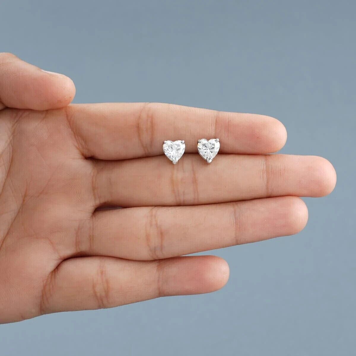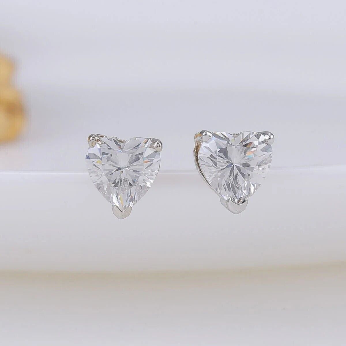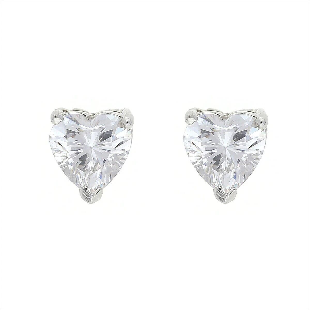 2Ct Heart Cut Lab Created Diamond Solitaire Stud Earrings 14K White Gold Plated