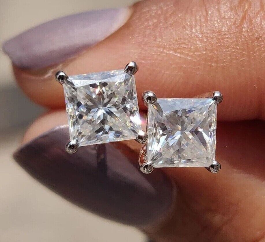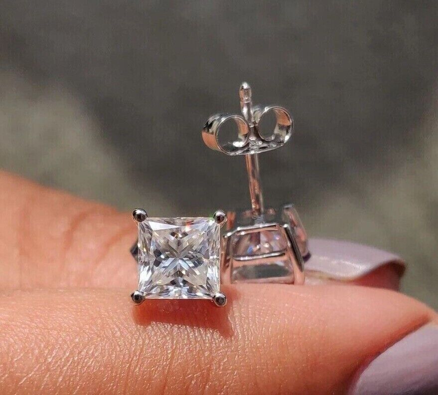 2Ct Princess Lab Created Diamond Solitaire Stud Earrings 14k White Gold Plated